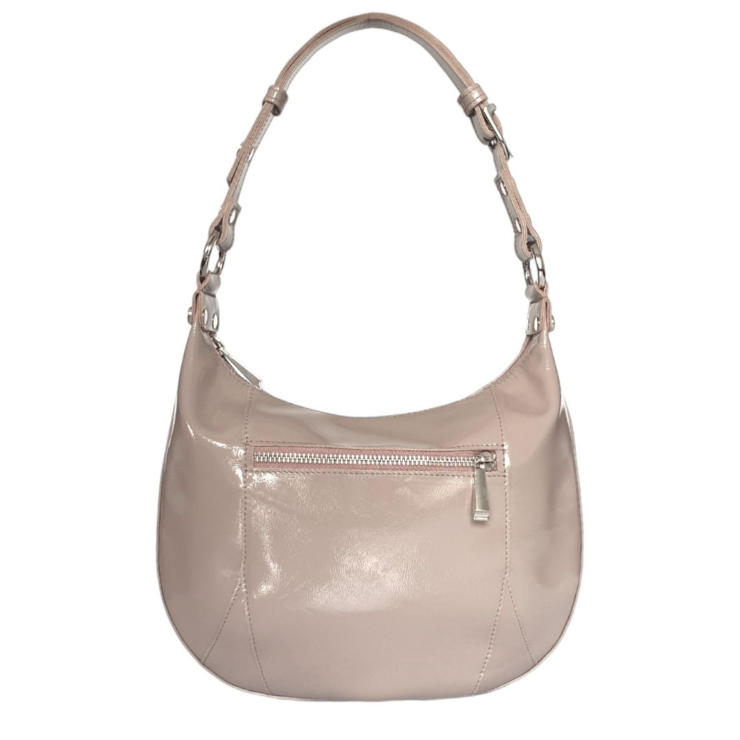 Сумка жіноча кольору кави з молоком, натуральна гладка лакова шкіра
