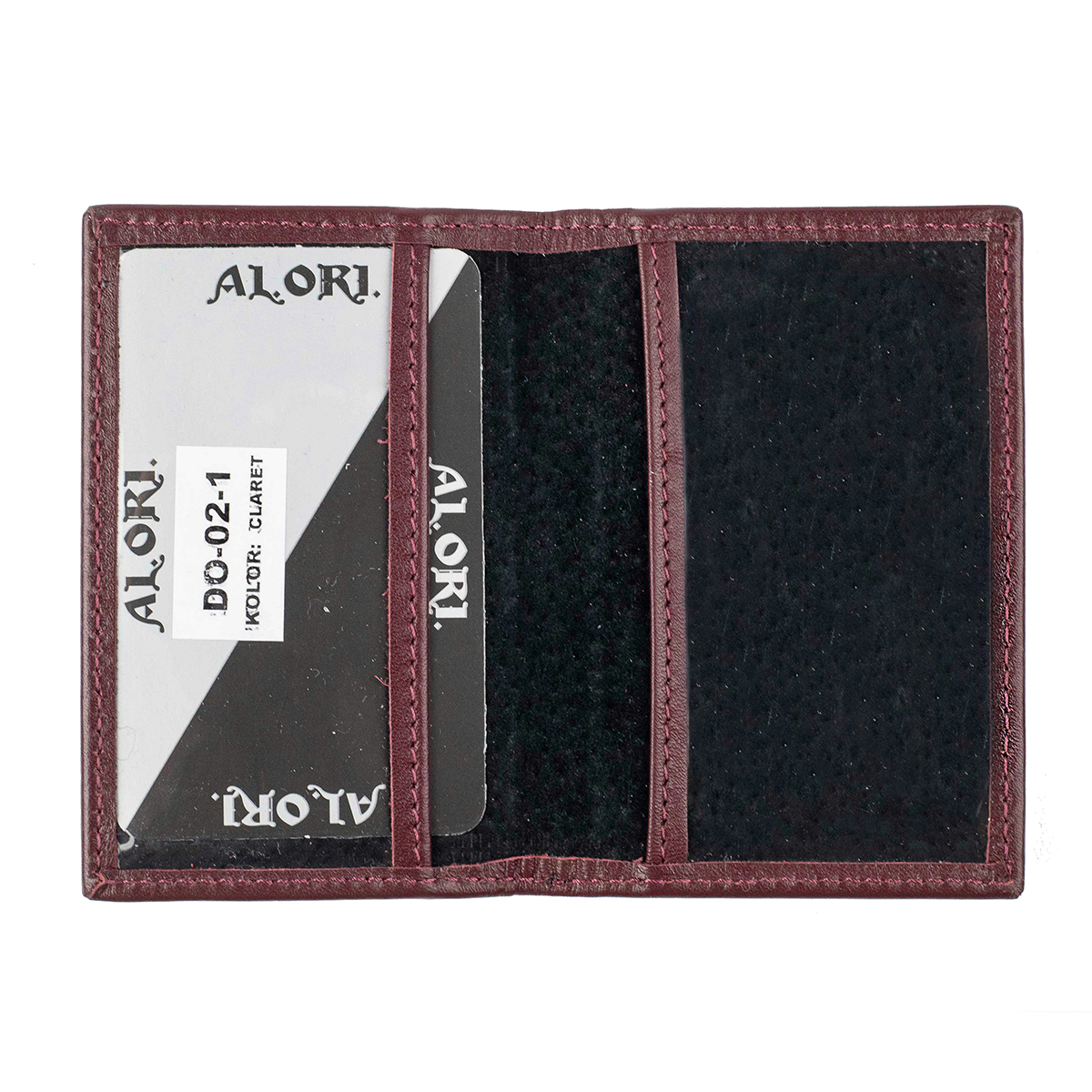 Обкладинка для пластикових документів кольору марсала, натуральна гладка шкіра.
