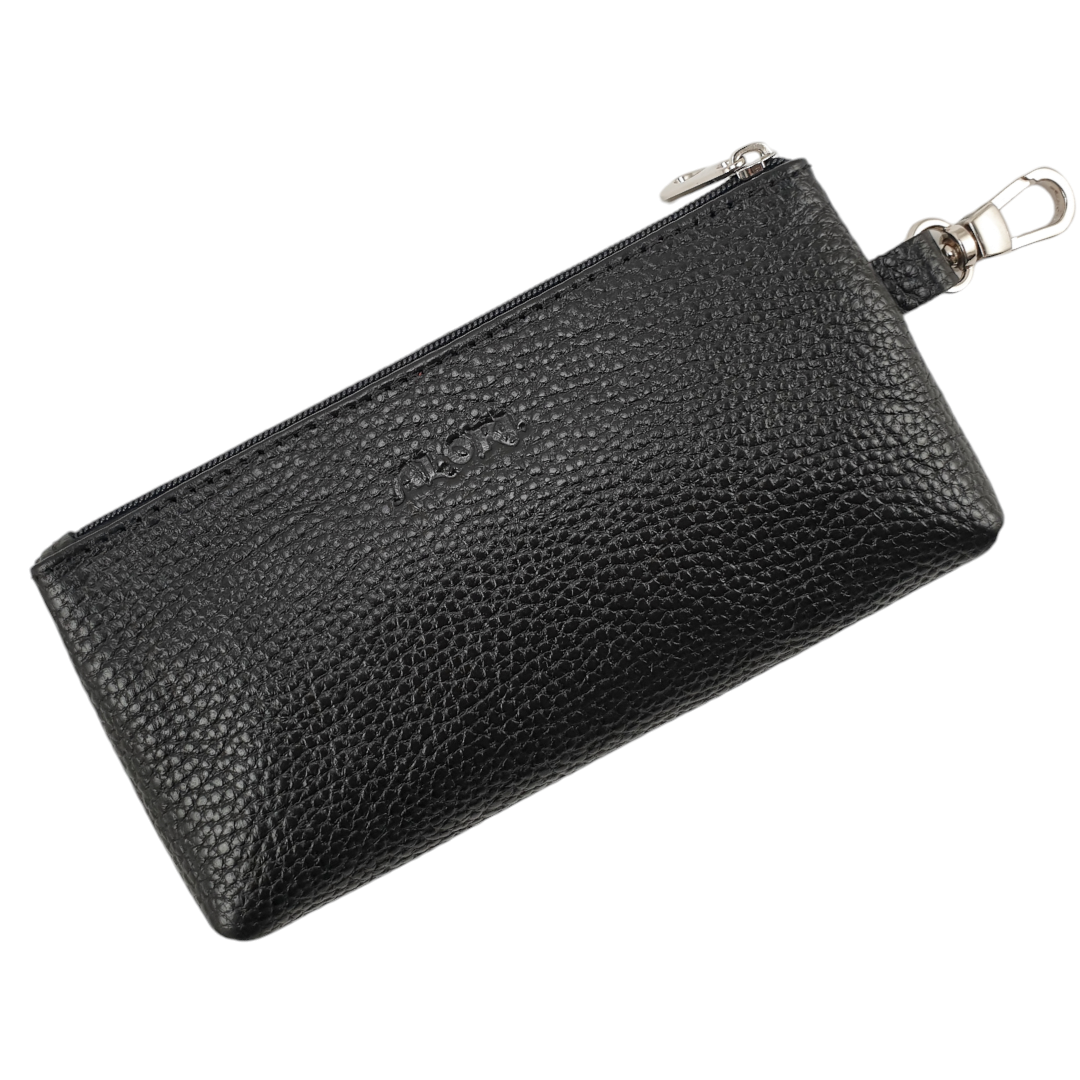 Ключниця з двома відділами, чорного кольору, натуральна шкіра флотар