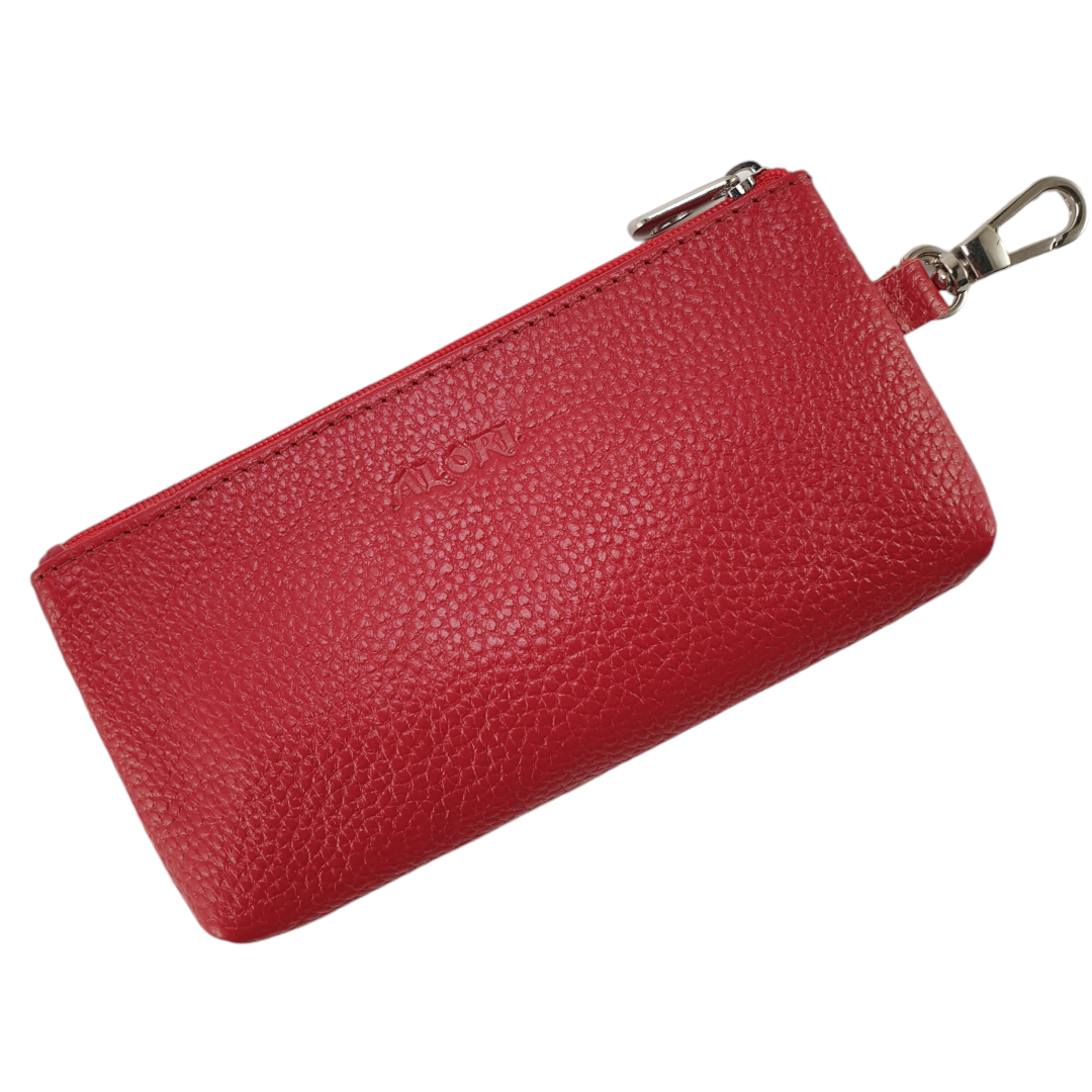 Ключниця з двома відділами, червоного кольору, натуральна шкіра флотар