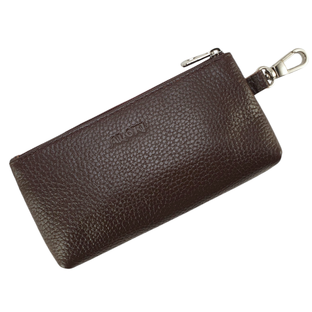 Ключниця з двома відділами, коричневого кольору, натуральна шкіра флотар