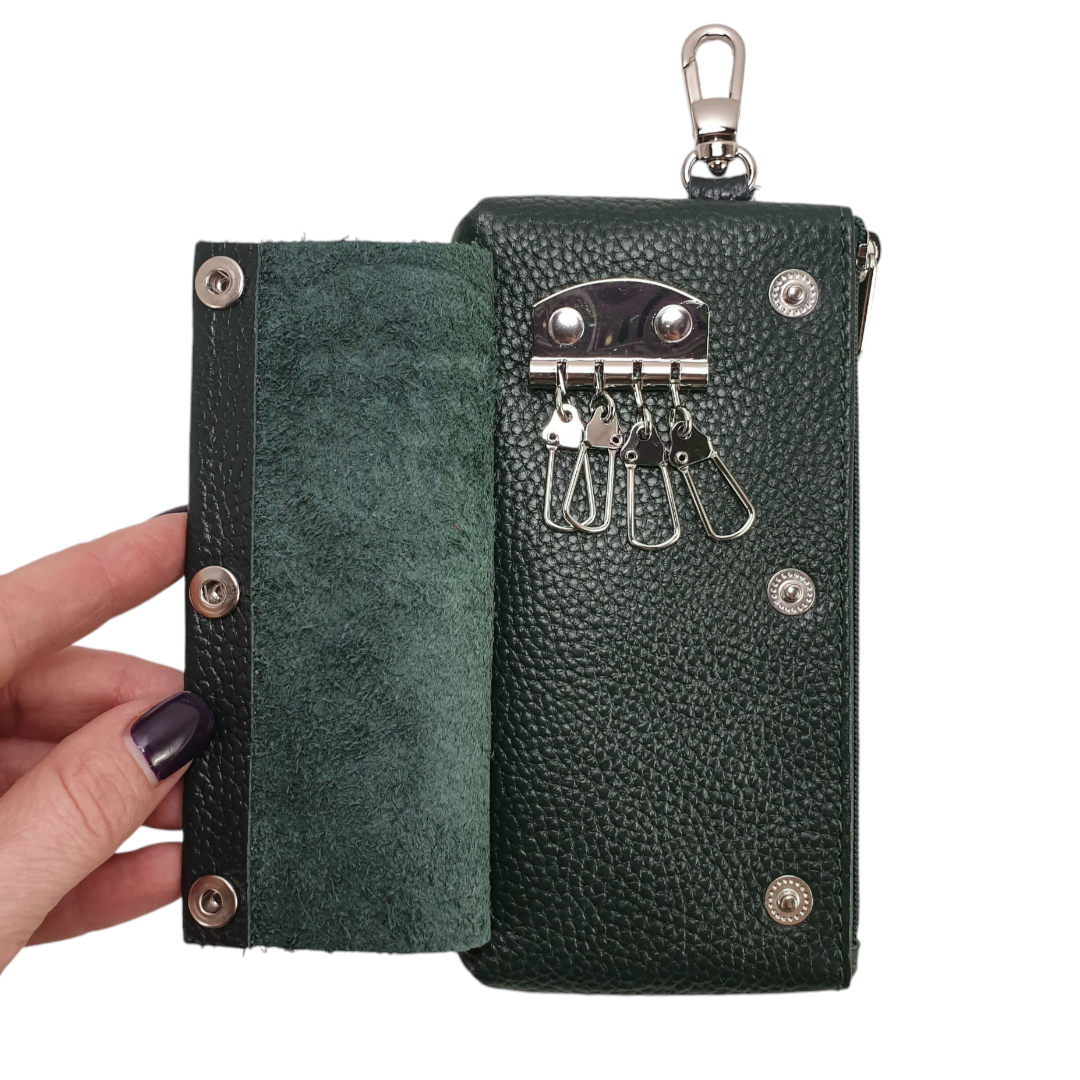 Ключниця з двома відділами, зеленого кольору, натуральна шкіра флотар