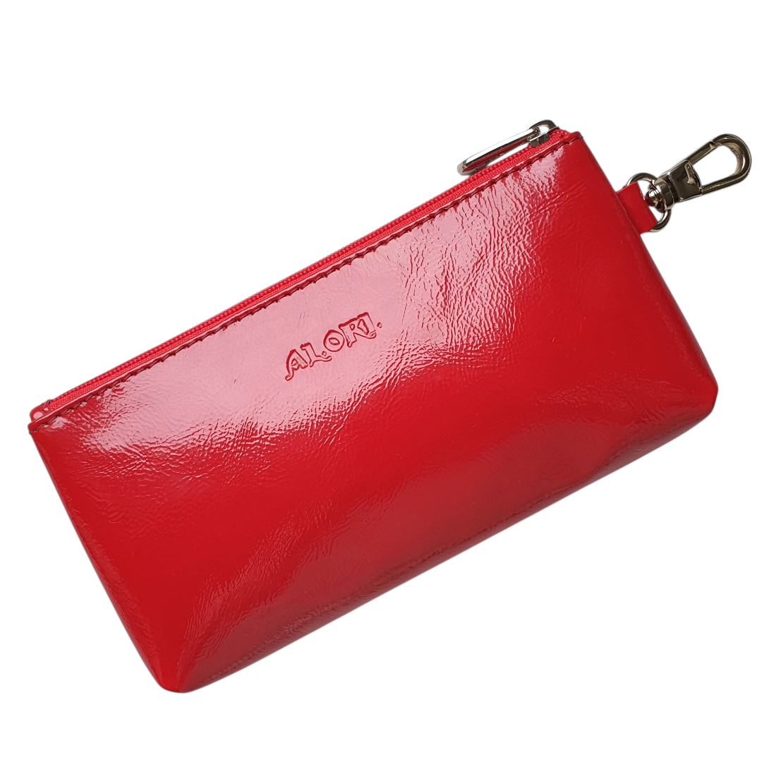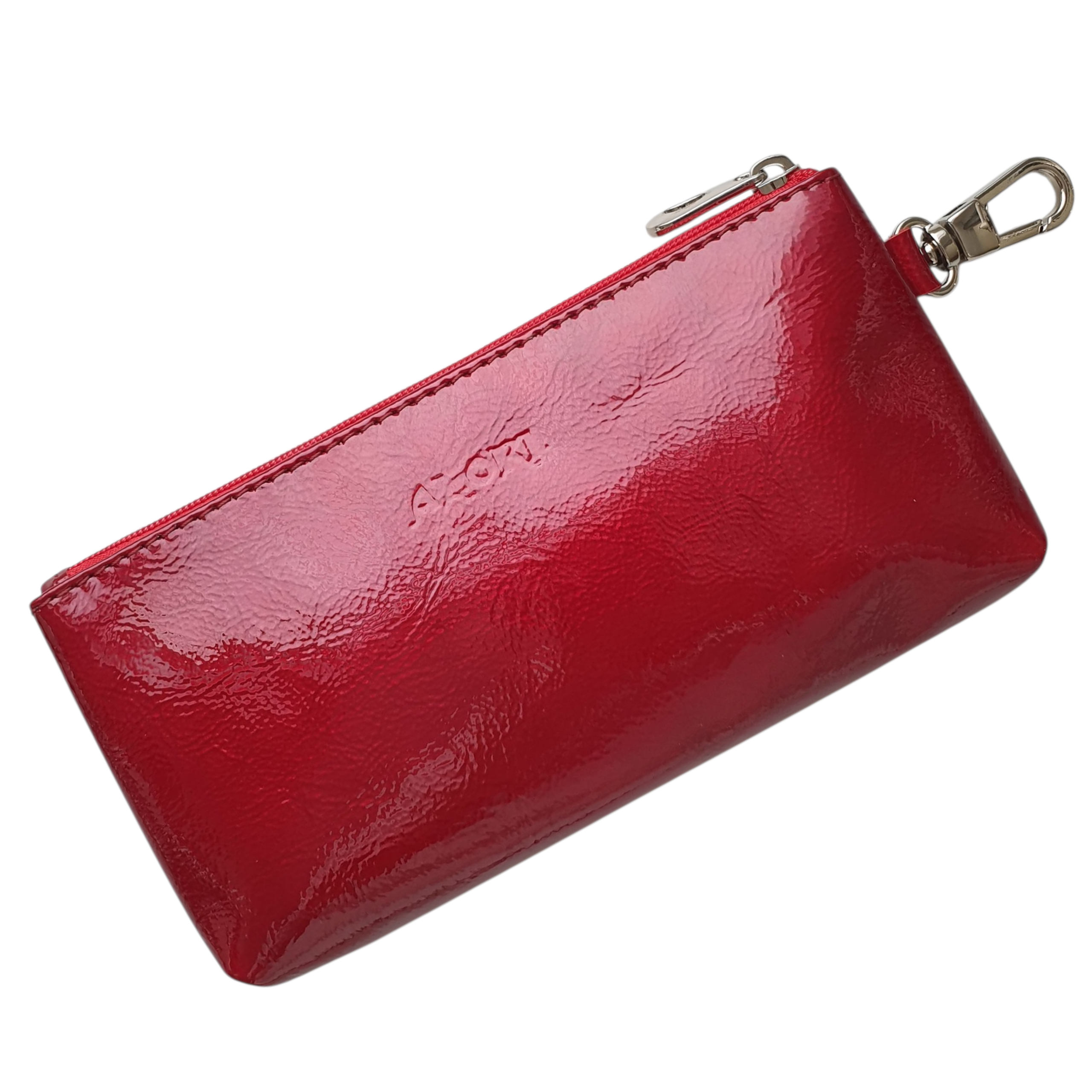 Ключниця з двома відділами, червоного кольору, натуральна лакована шкіра з 3D ефектом