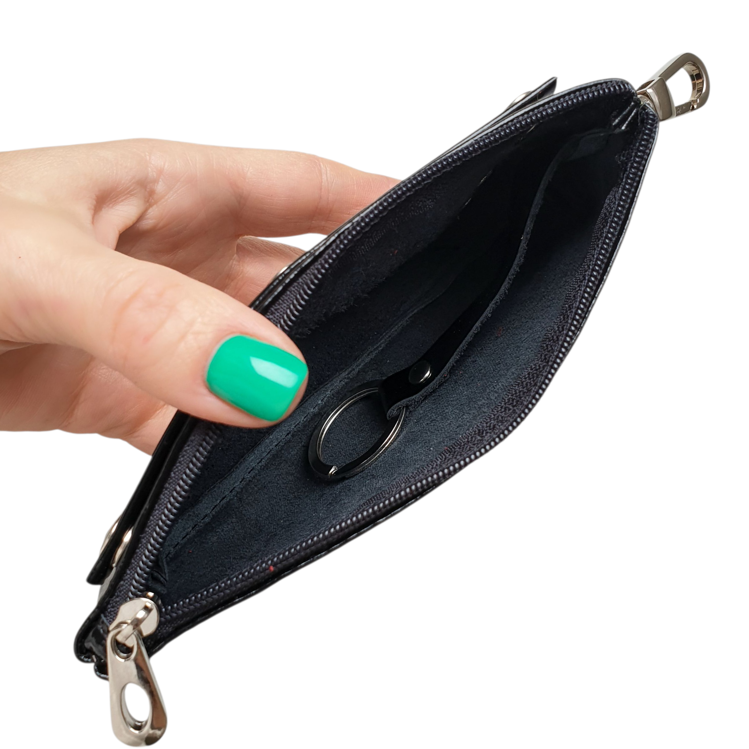 Ключниця з двома відділами, чорного кольору, натуральна лакована шкіра