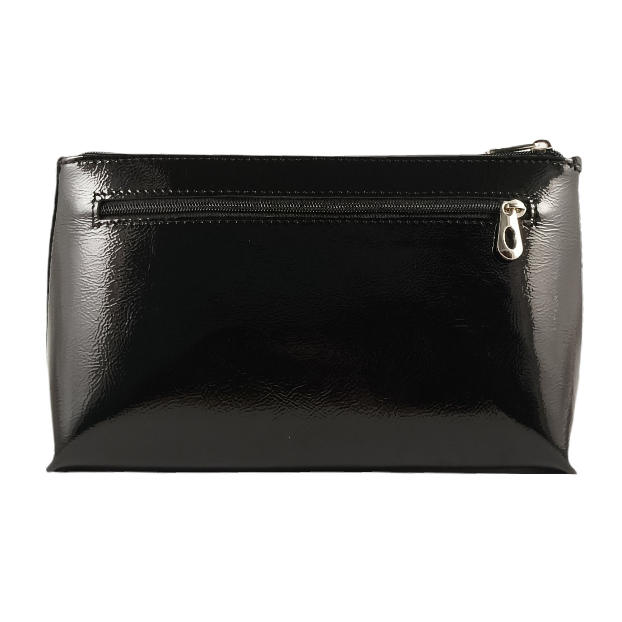Косметичка жіноча чорного кольору, натуральна гладка лакова шкіра.