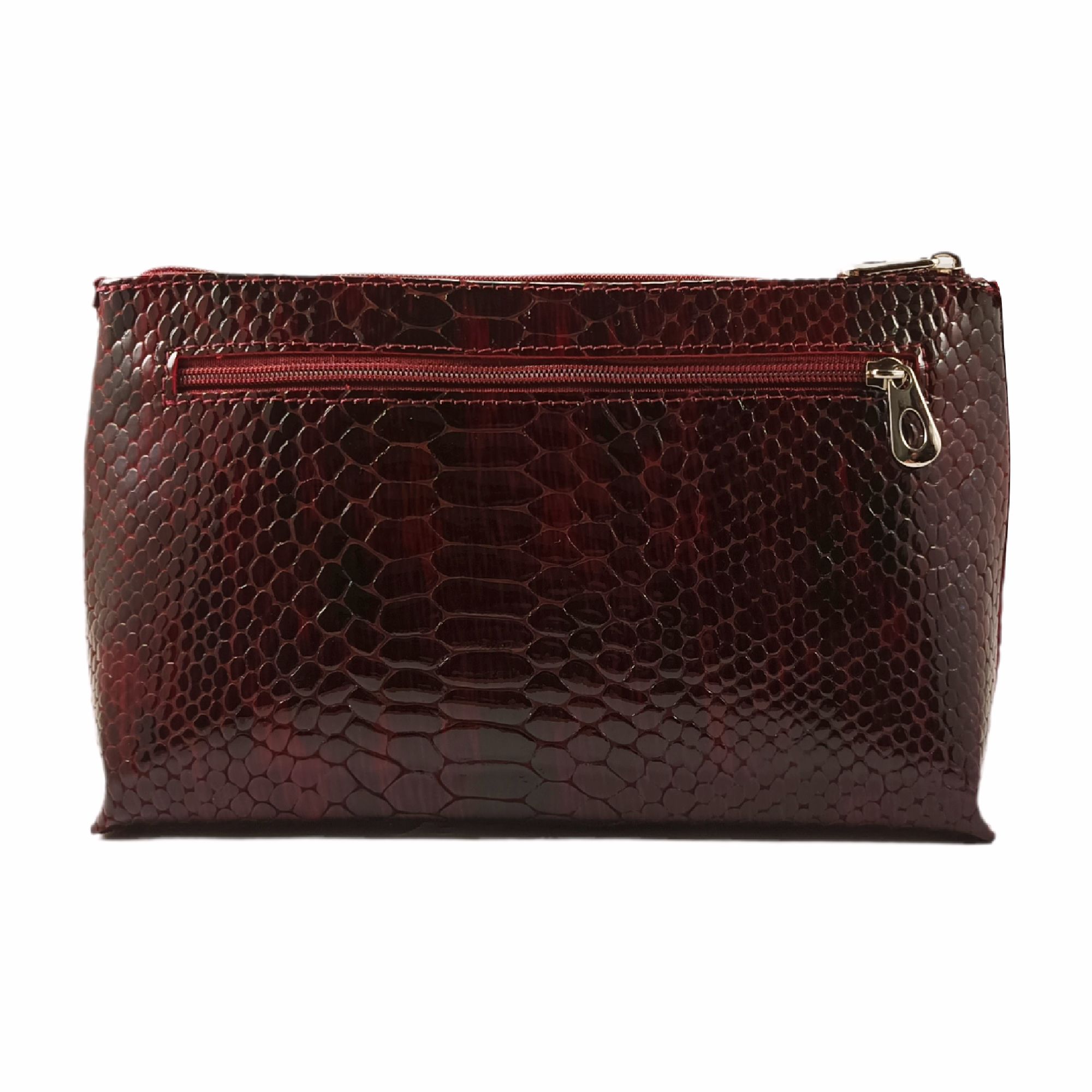 Косметичка жіноча бордового кольору, натуральна шкіра з тисненням під рептилію