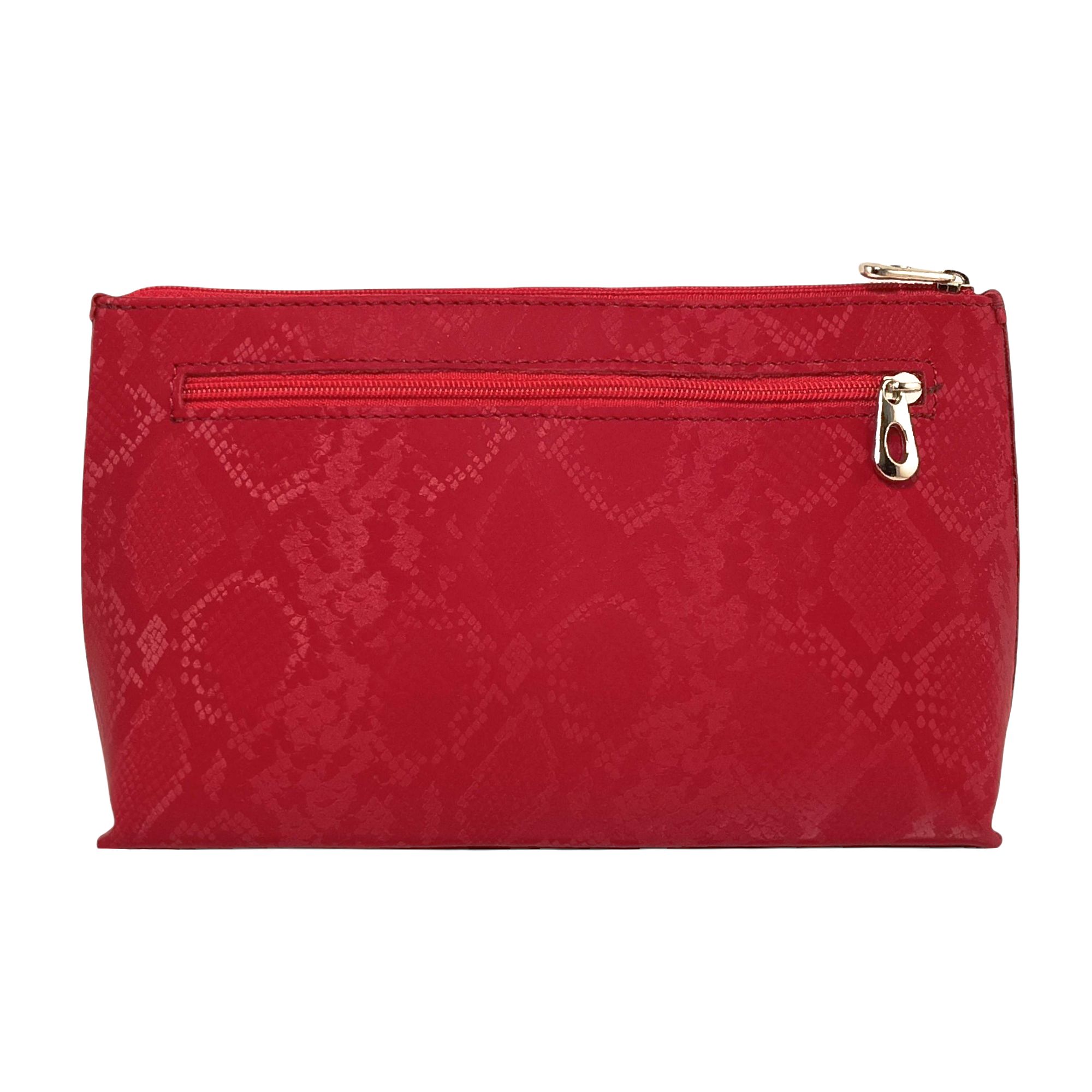 Косметичка жіноча червоного кольору, натуральна шкіра зі зміїним принтом, голографік