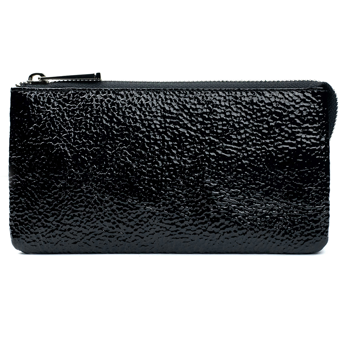 Гаманець-клатч жіночий чорний, натуральна лакова шкіра з бугристою фактурою