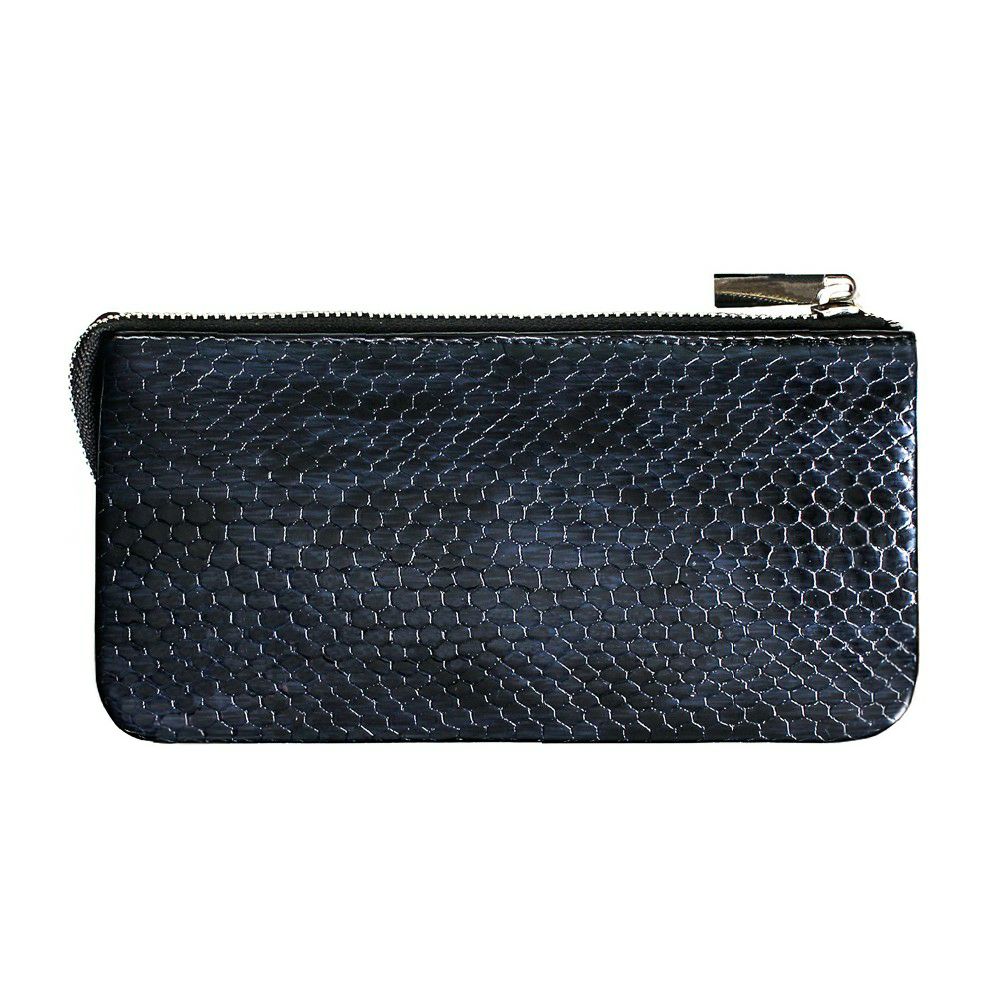 Гаманець-клатч жіночий чорний, натуральна лакова шкіра з тисненням під рептилію