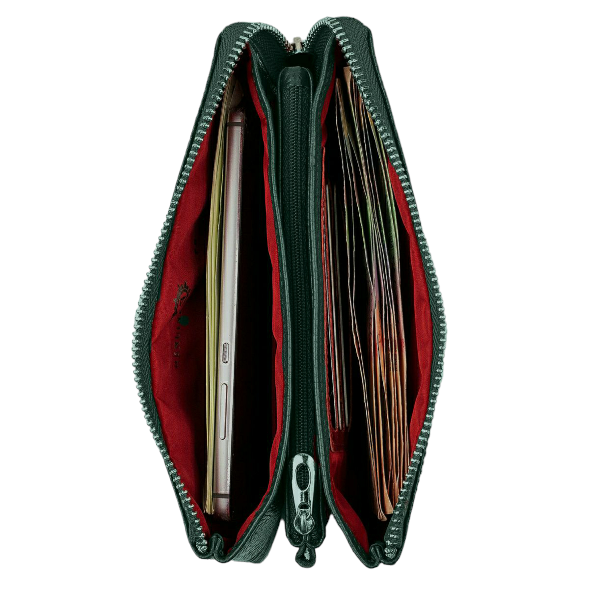 Гаманець-клатч жіночий зеленого кольору, натуральна шкіра флотар