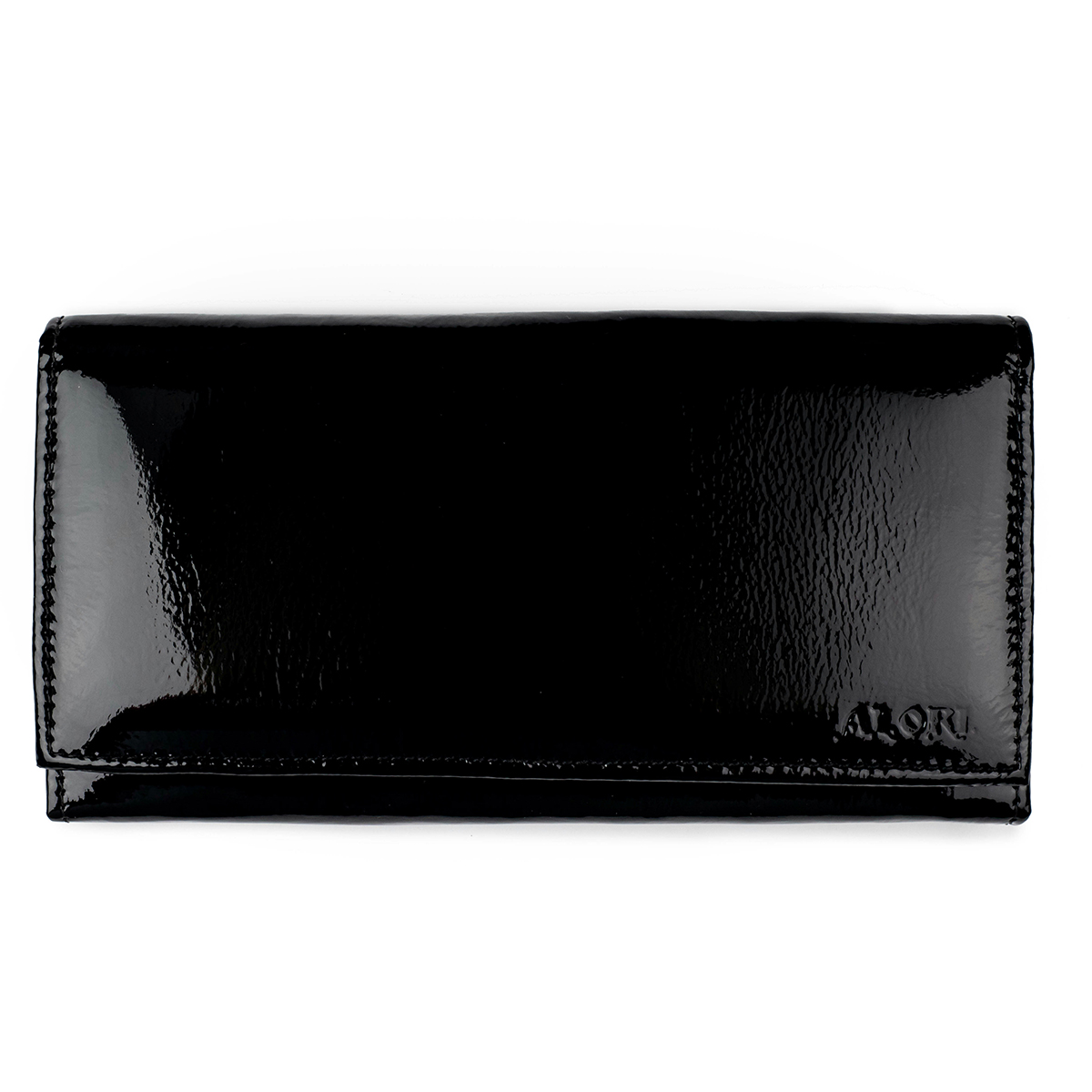 Гаманець жіночий чорний, натуральна гладка лакова шкіра