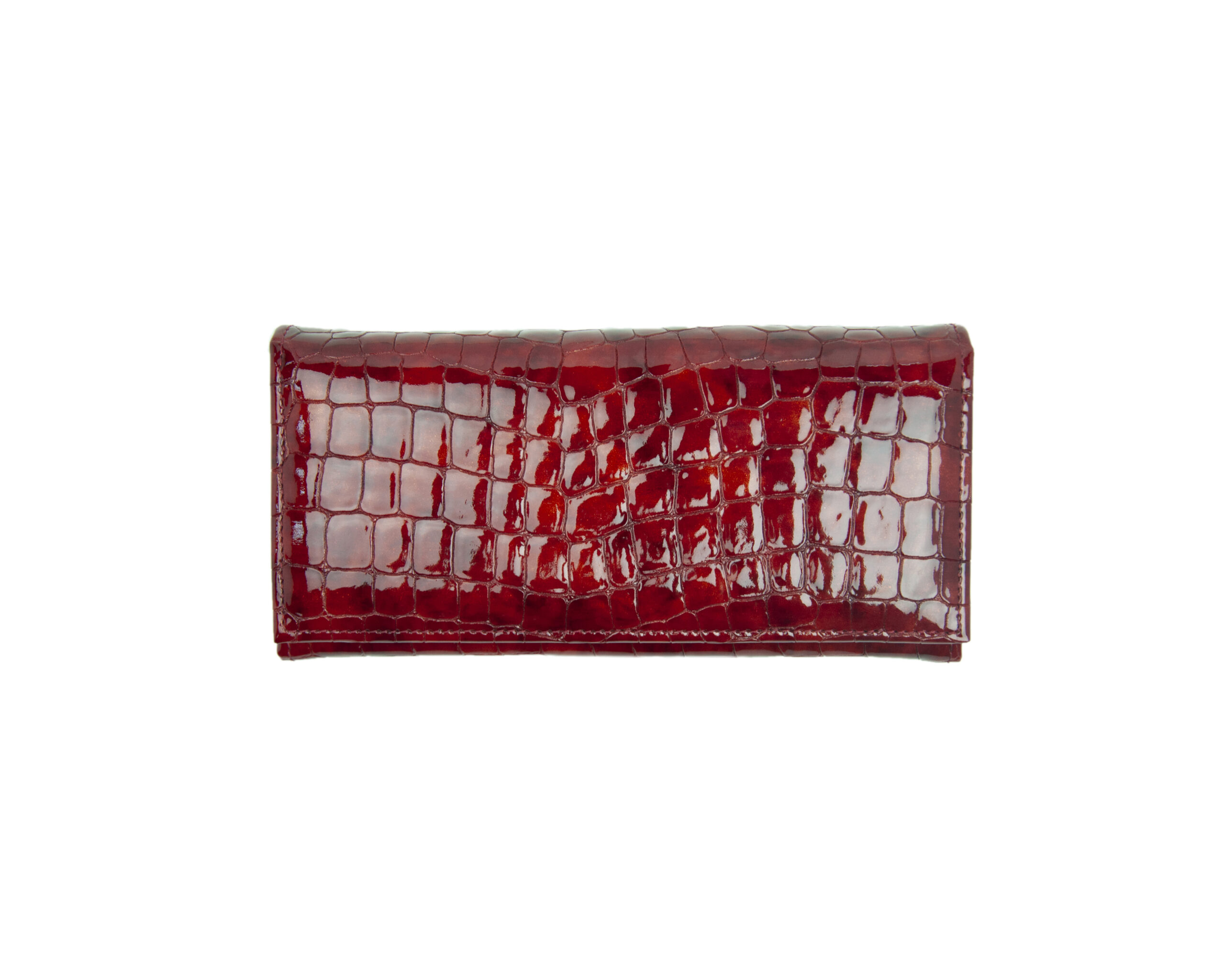Гаманець жіночий червоний, натуральна лакова шкіра з тисненням під рептилію, червоного кольору, із вкрапленням золотих частинок.