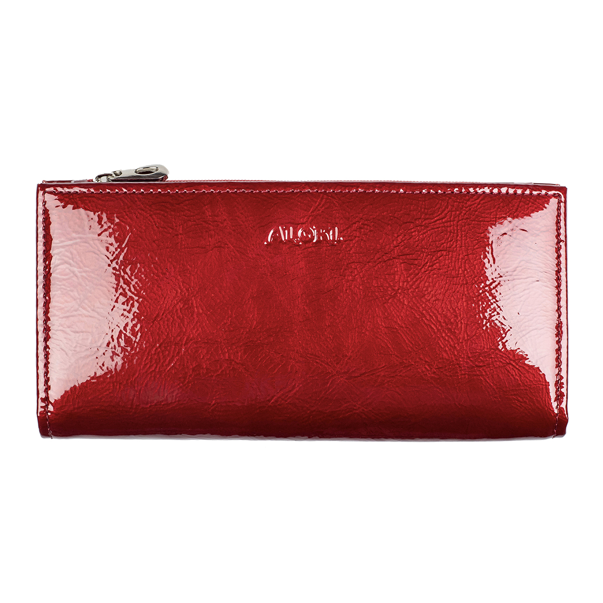 Купюрниця жіноча червоного кольору, натуральна гладка лакова шкіра.