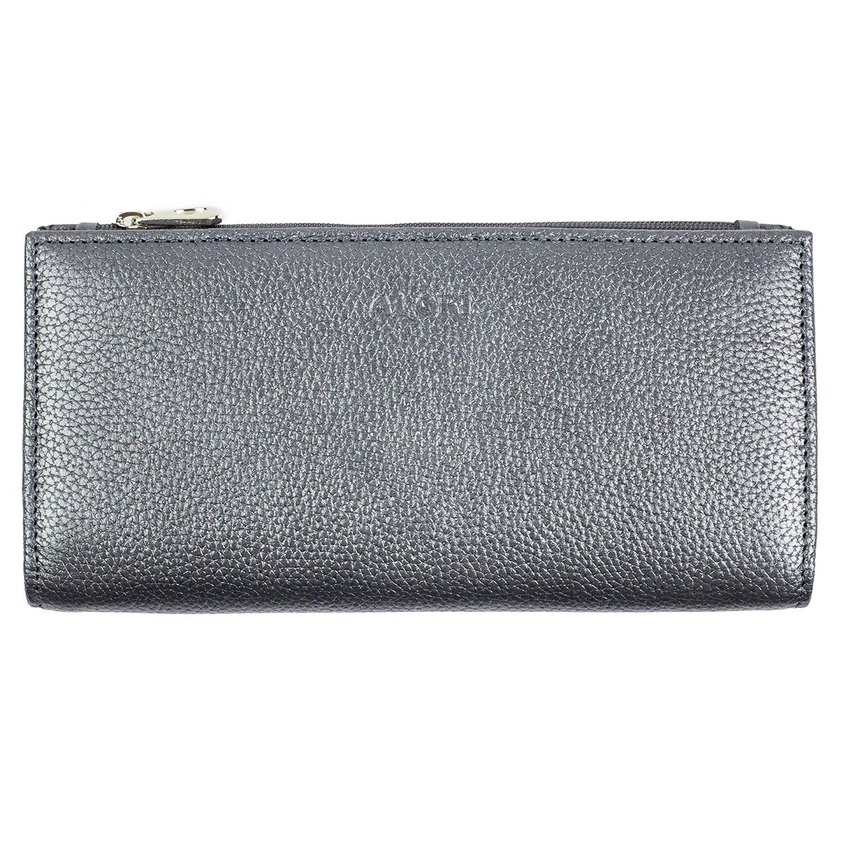 Купюрниця жіноча срібного кольору, натуральна шкіра флотар