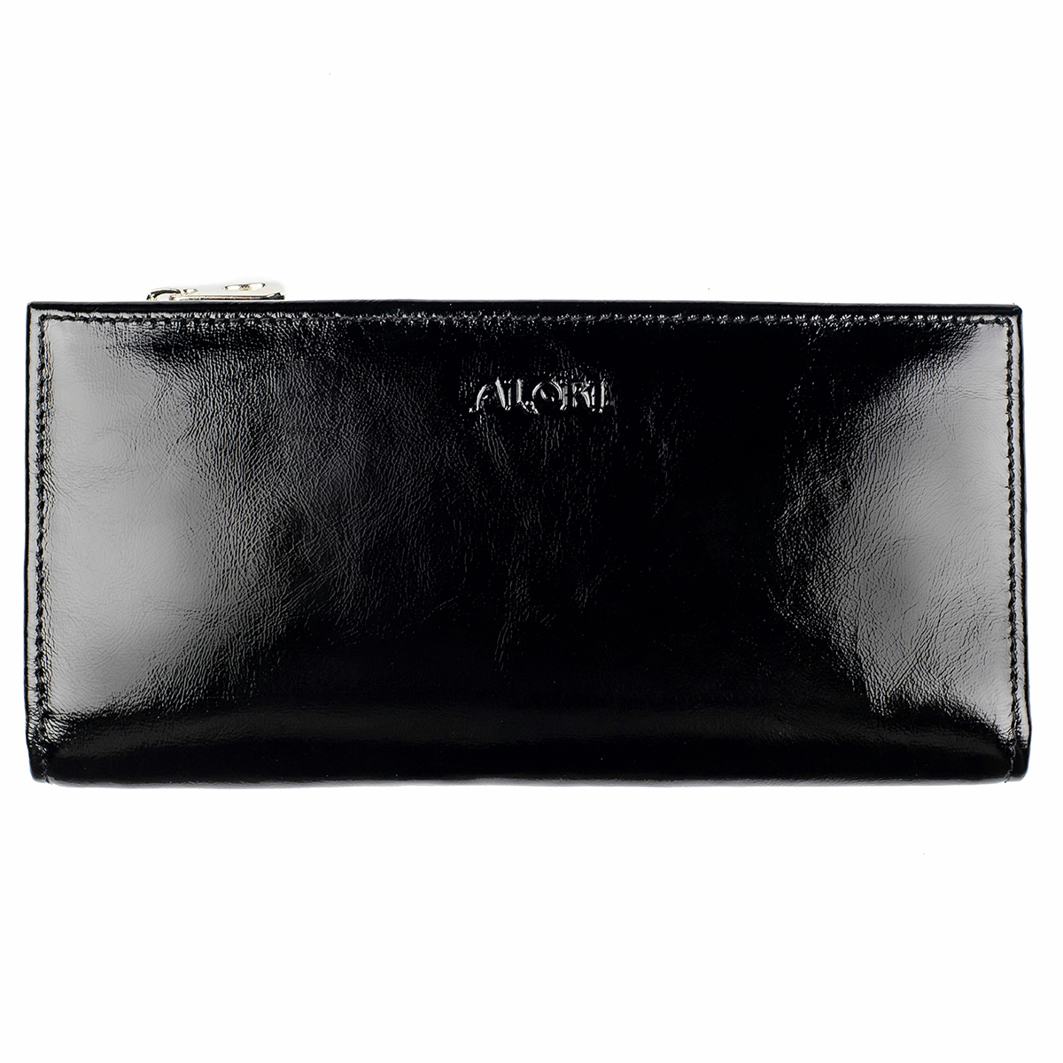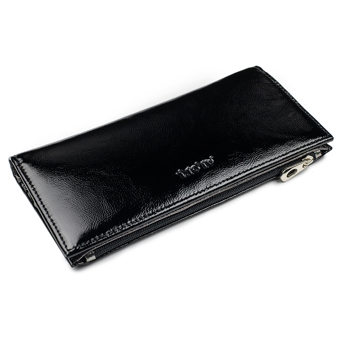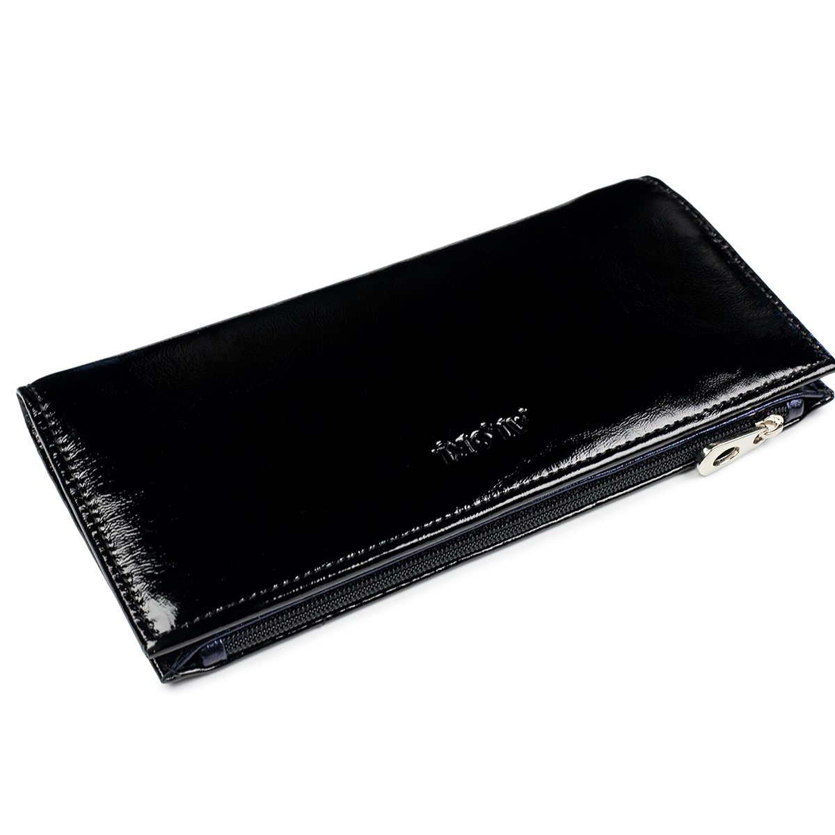Купюрниця жіноча чорного кольору, натуральна гладка лакова шкіра.