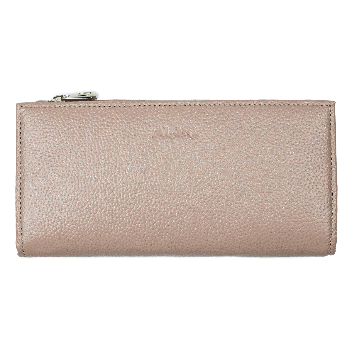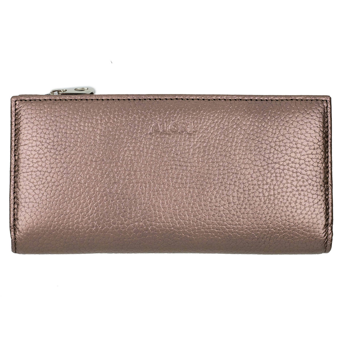 Купюрниця жіноча кольору кави з молоком, натуральна шкіра флотар із шиммером