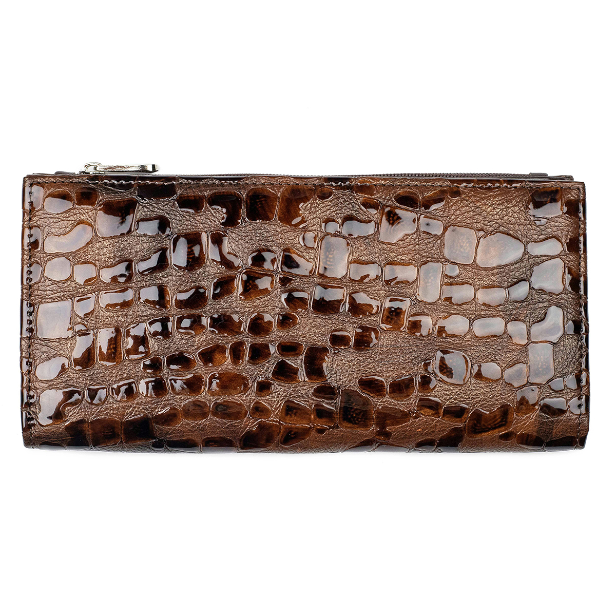 Купюрниця жіноча кольору кави з молоком, натуральна гладка лакована шкіра