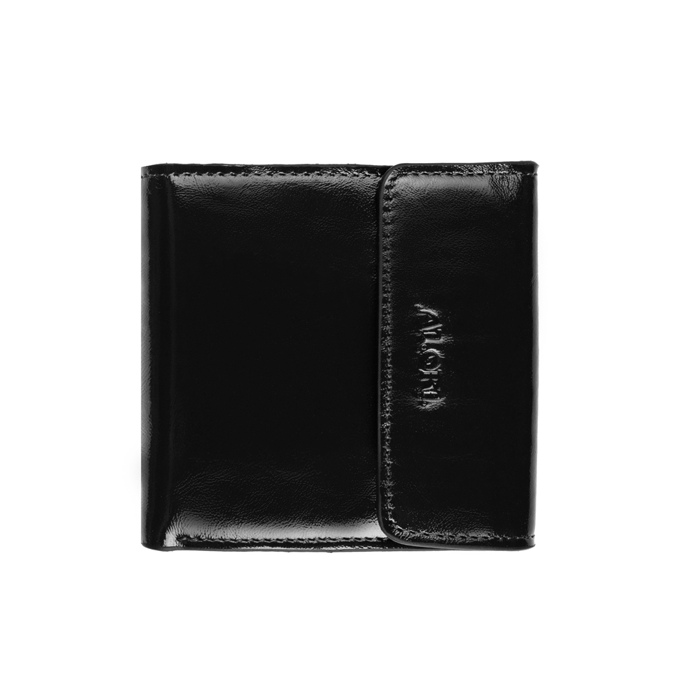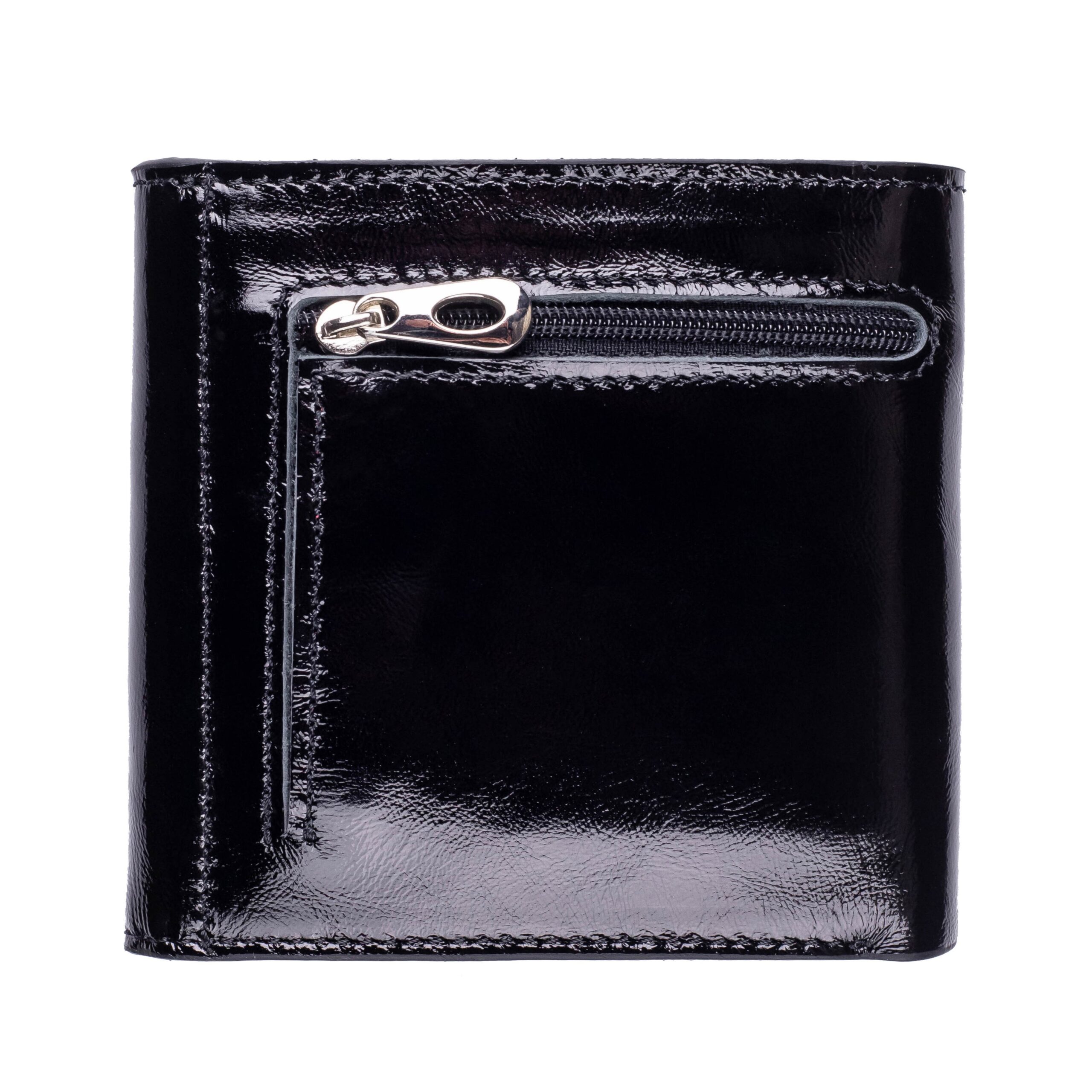 Гаманець-міні жіночий чорний, натуральна гладка лакова шкіра