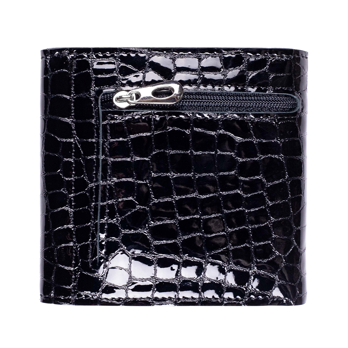 Гаманець-міні жіночий чорного кольору, натуральна лакова шкіра з тисненням під рептилію