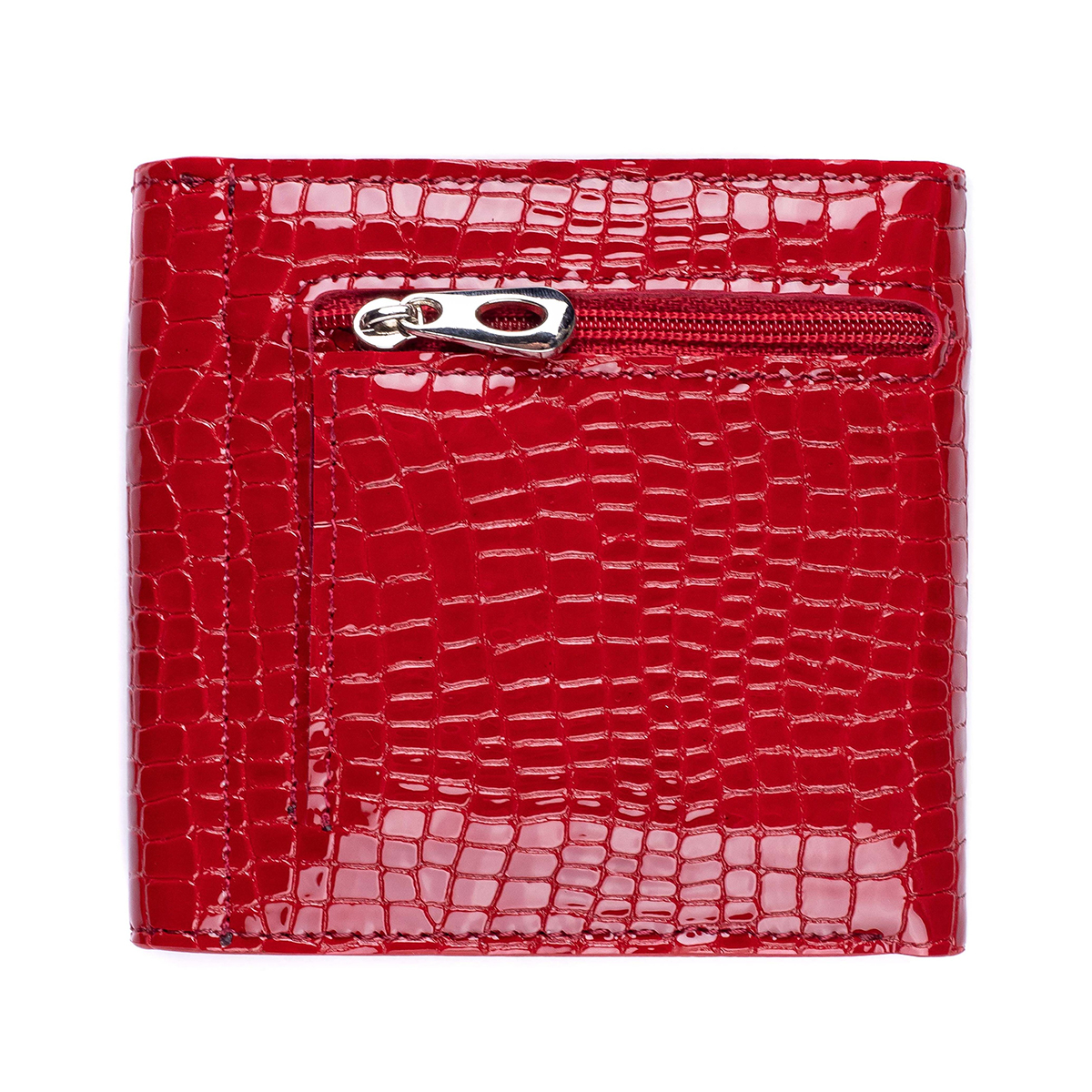 Гаманець-міні жіночий червоний, натуральна лакова шкіра з тисненням під рептилію