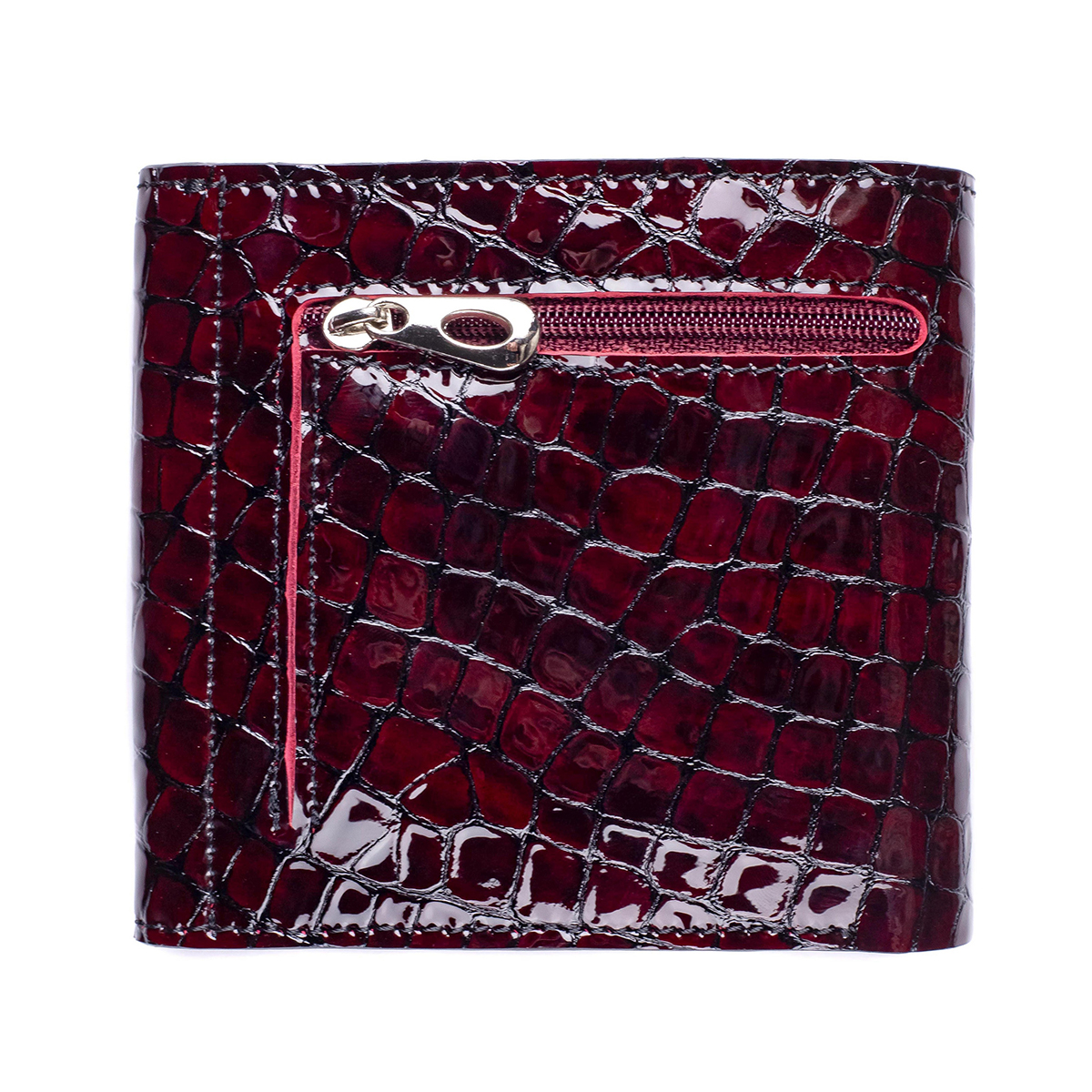 Гаманець-міні жіночий бордовий, натуральна лакова шкіра з тисненням під рептилію