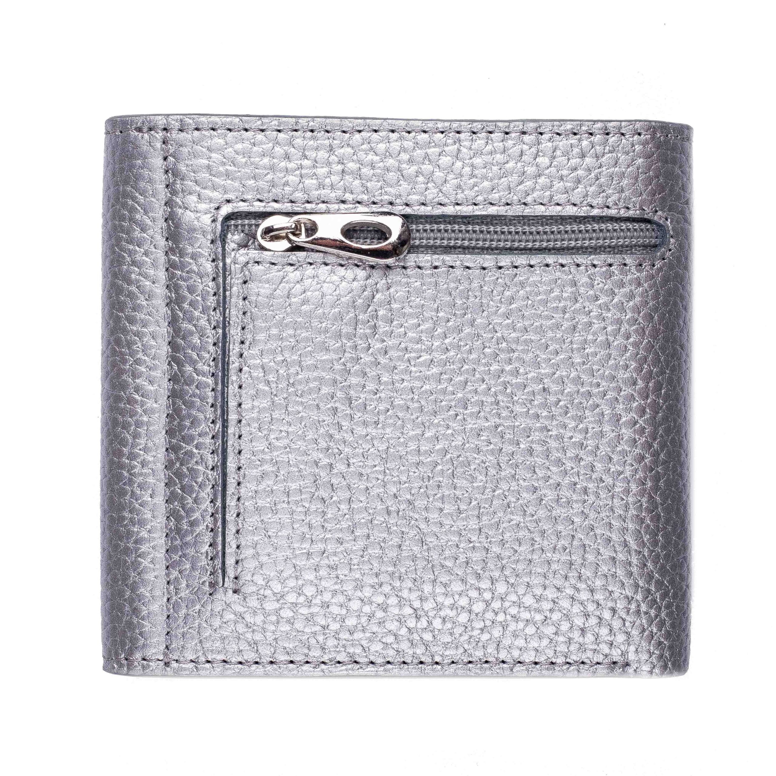Гаманець-міні жіночий світло-сріблястого кольору, натуральна шкіра флотар