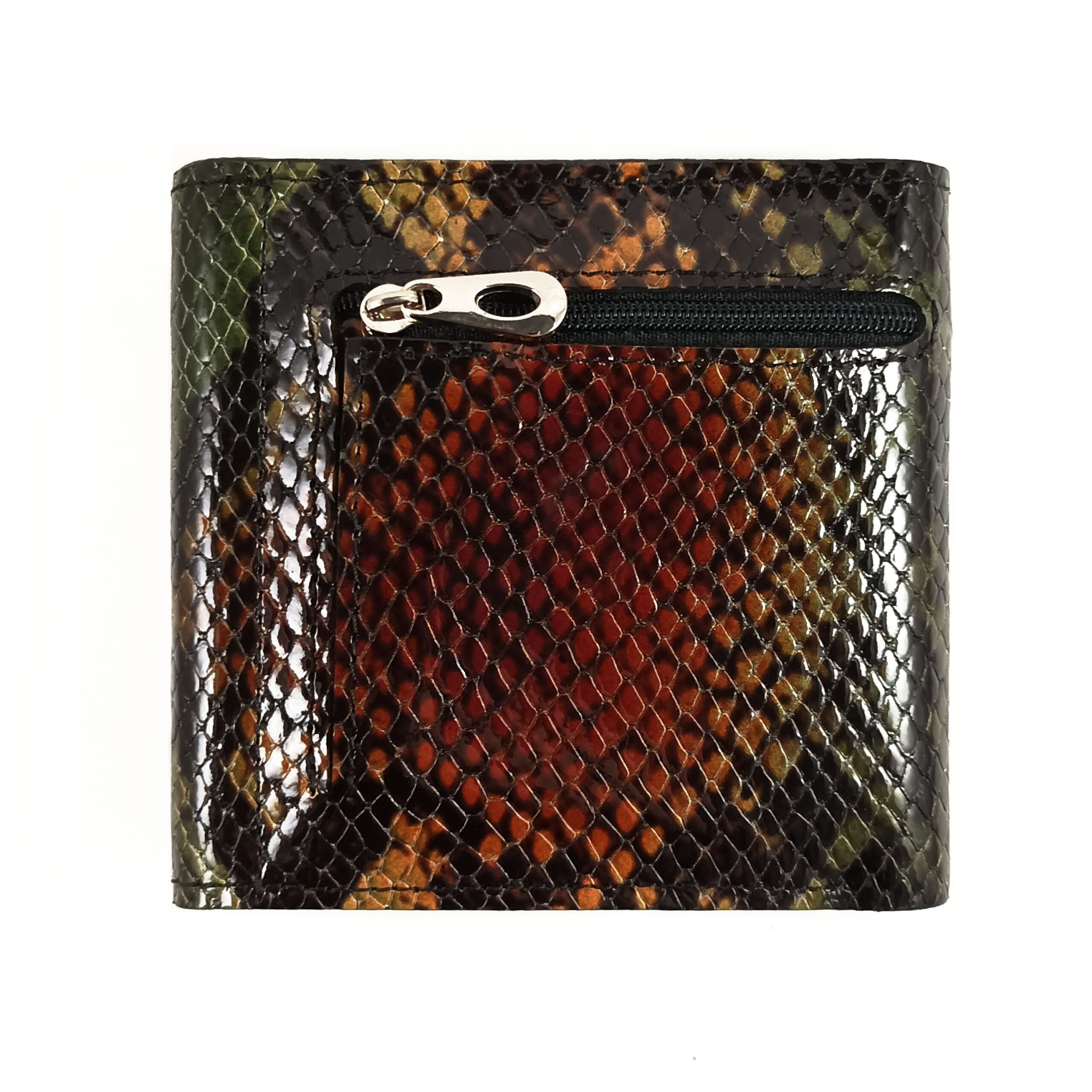 Гаманець-міні жіночий кольору хакі, натуральна шкіра зі зміїним принтом, голографік.
