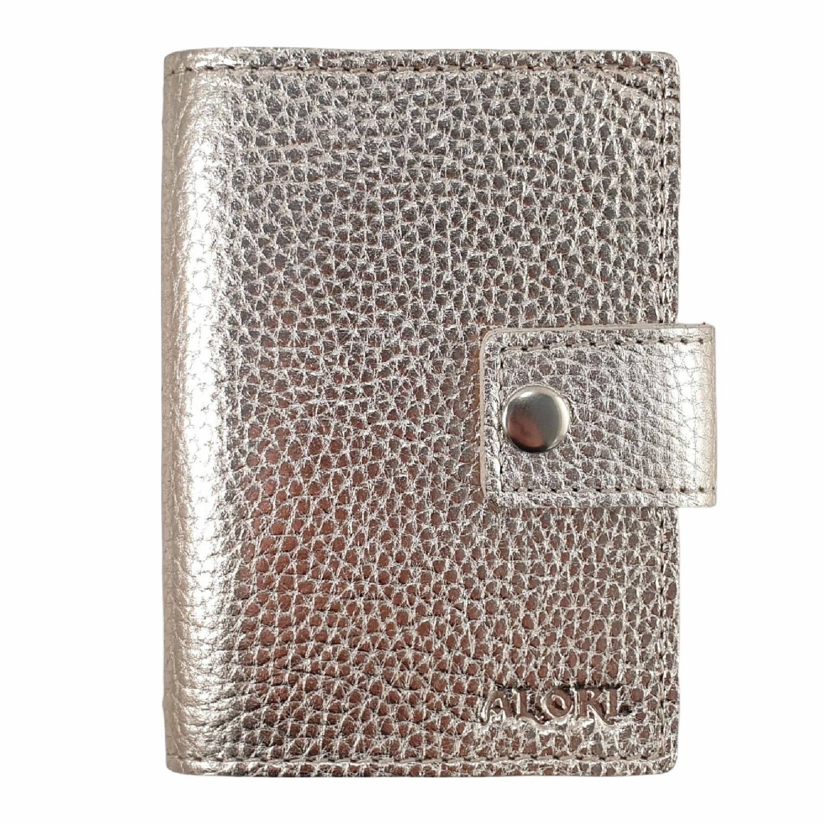 Візитниця виготовлена з натуральної шкіри флотар золотистого кольору.
