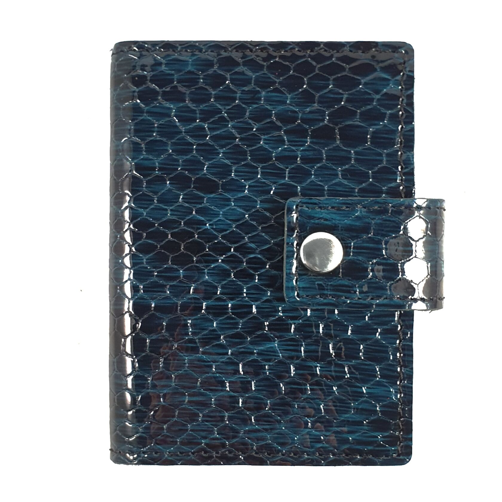 Візитниця виконана з натуральної шкіри з тисненням під рептилію смарагдового кольору.