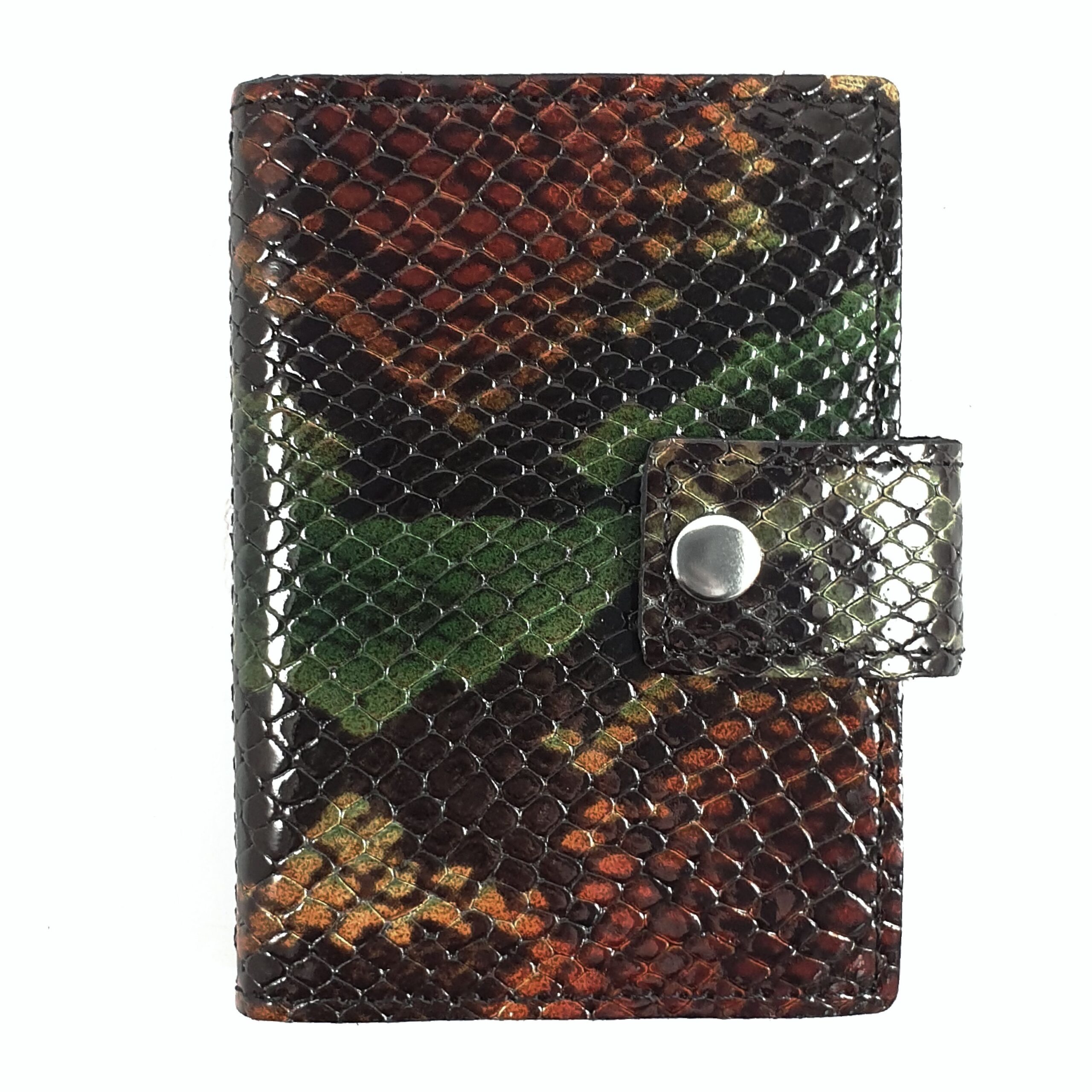 Візитниця виконана з натуральної шкіри оригінального забарвлення із тисненням під рептилію.