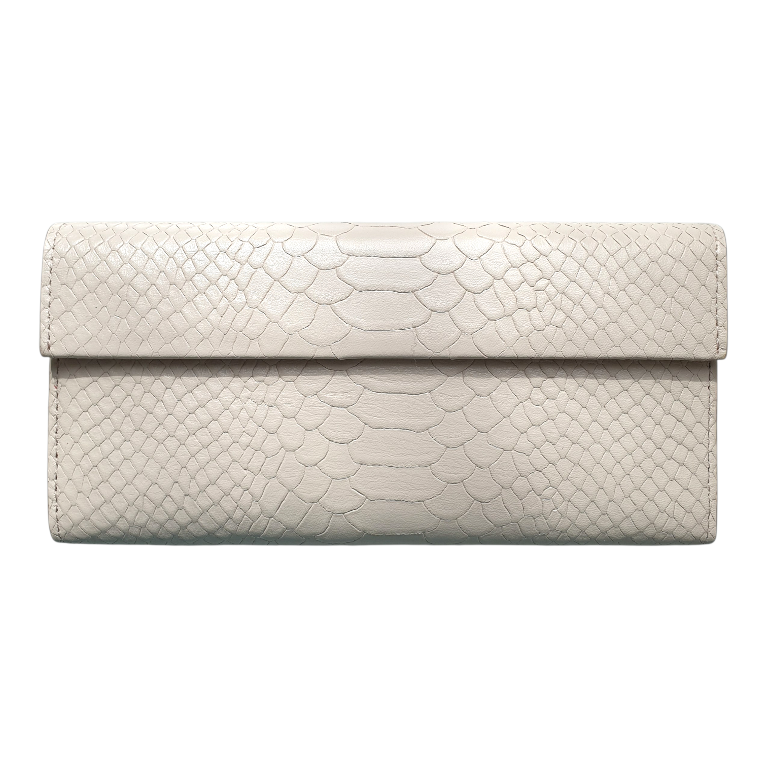Гаманець виконаний з натуральної шкіри з тисненнямпід пітона, бежевого кольору.