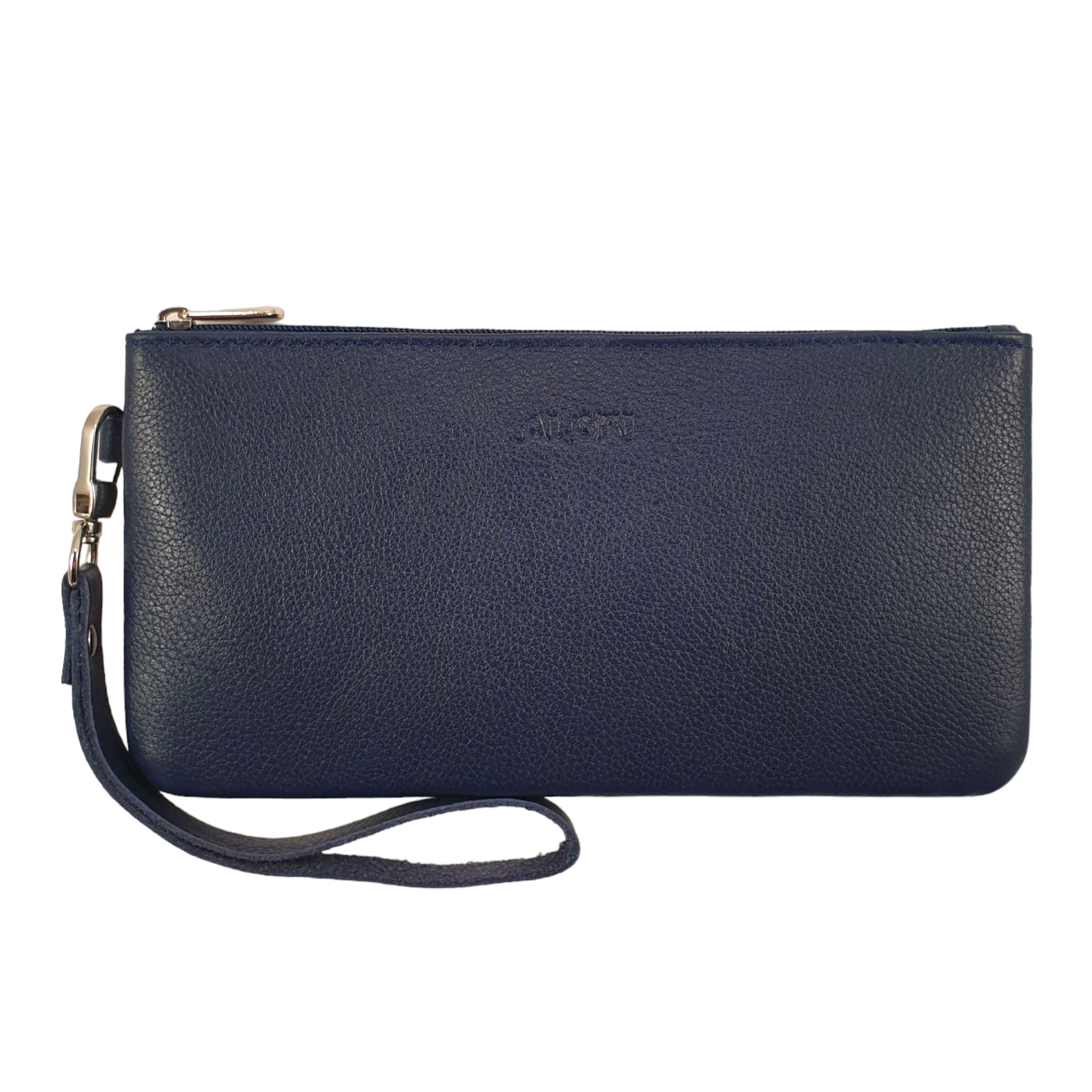 Гаманець-клатч синього кольору, натуральна шкіра флотар
