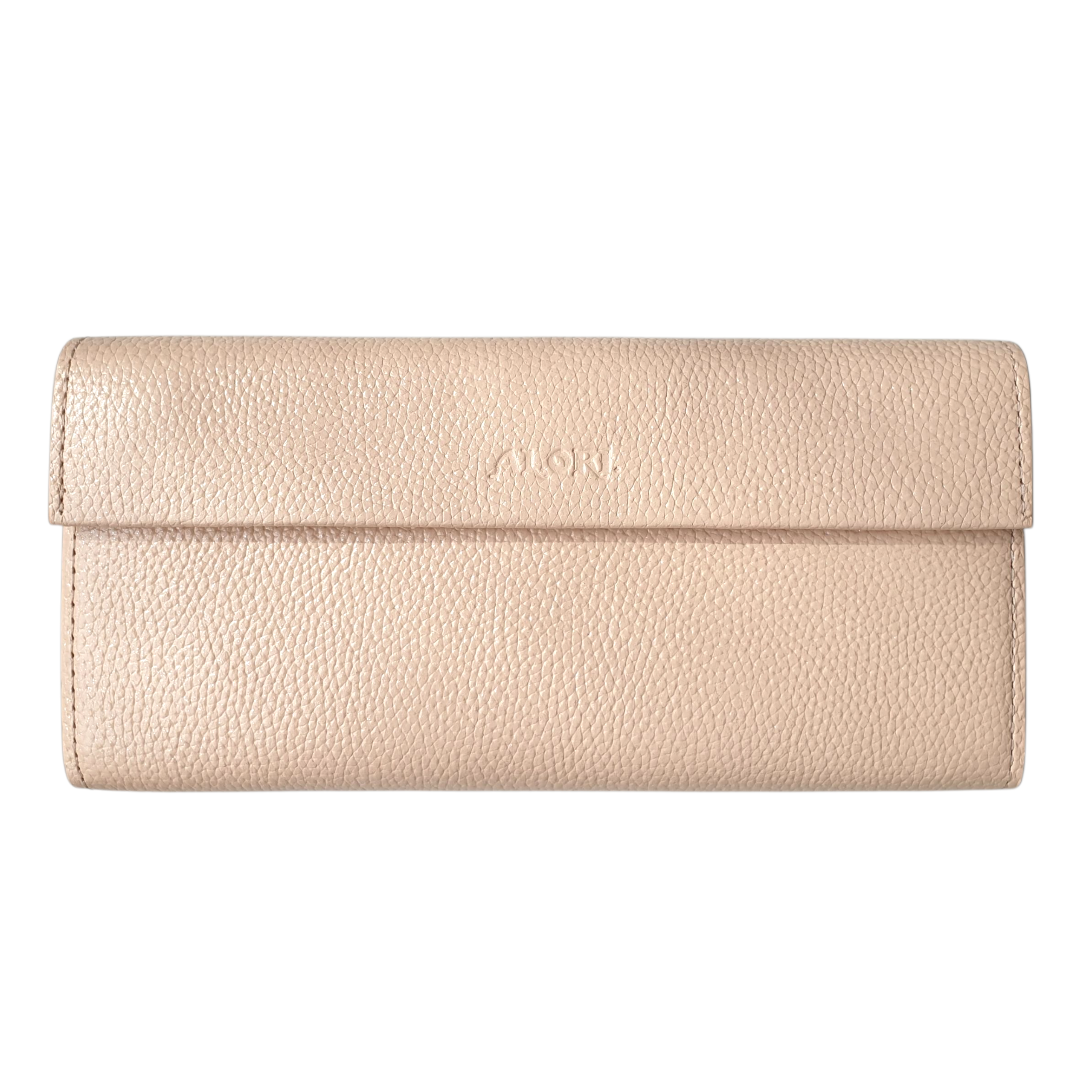 Гаманець виконаний з натуральної шкіри флотар, бежевого кольору із шиммером.