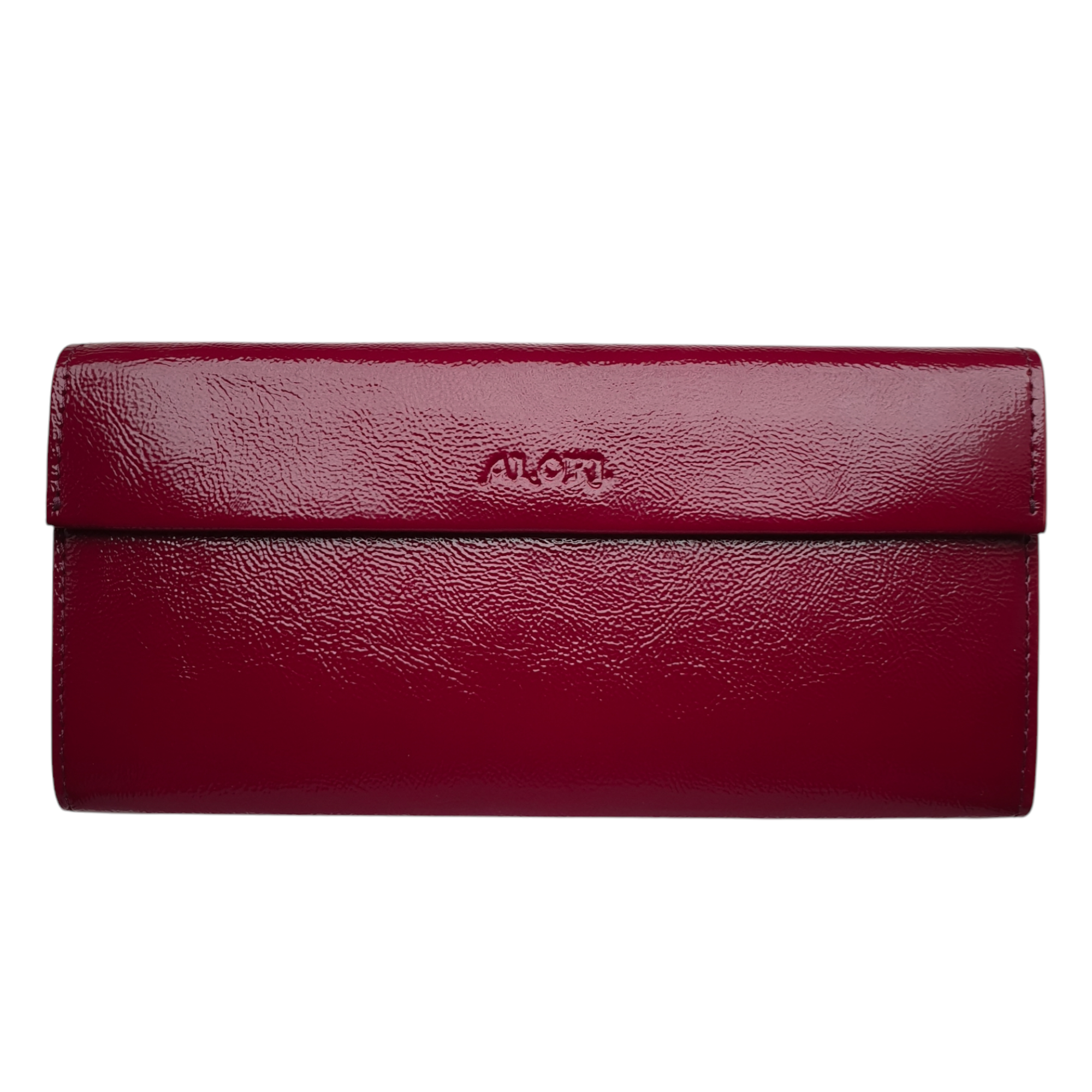 Гаманець виконаний із натуральної гладкої лакової шкіри, винного кольору.