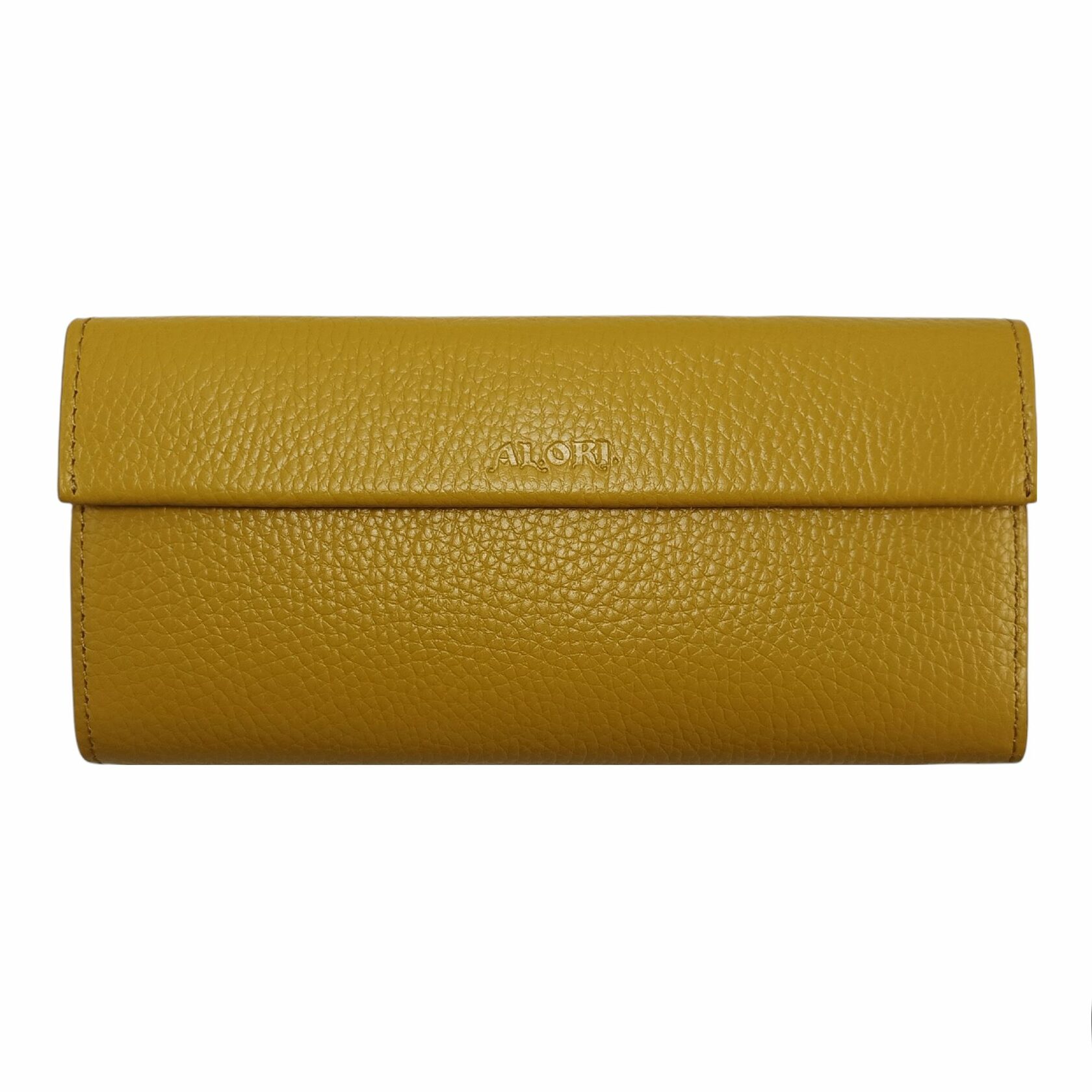Гаманець виконаний із натуральної шкіри флотар, жовтого кольору.