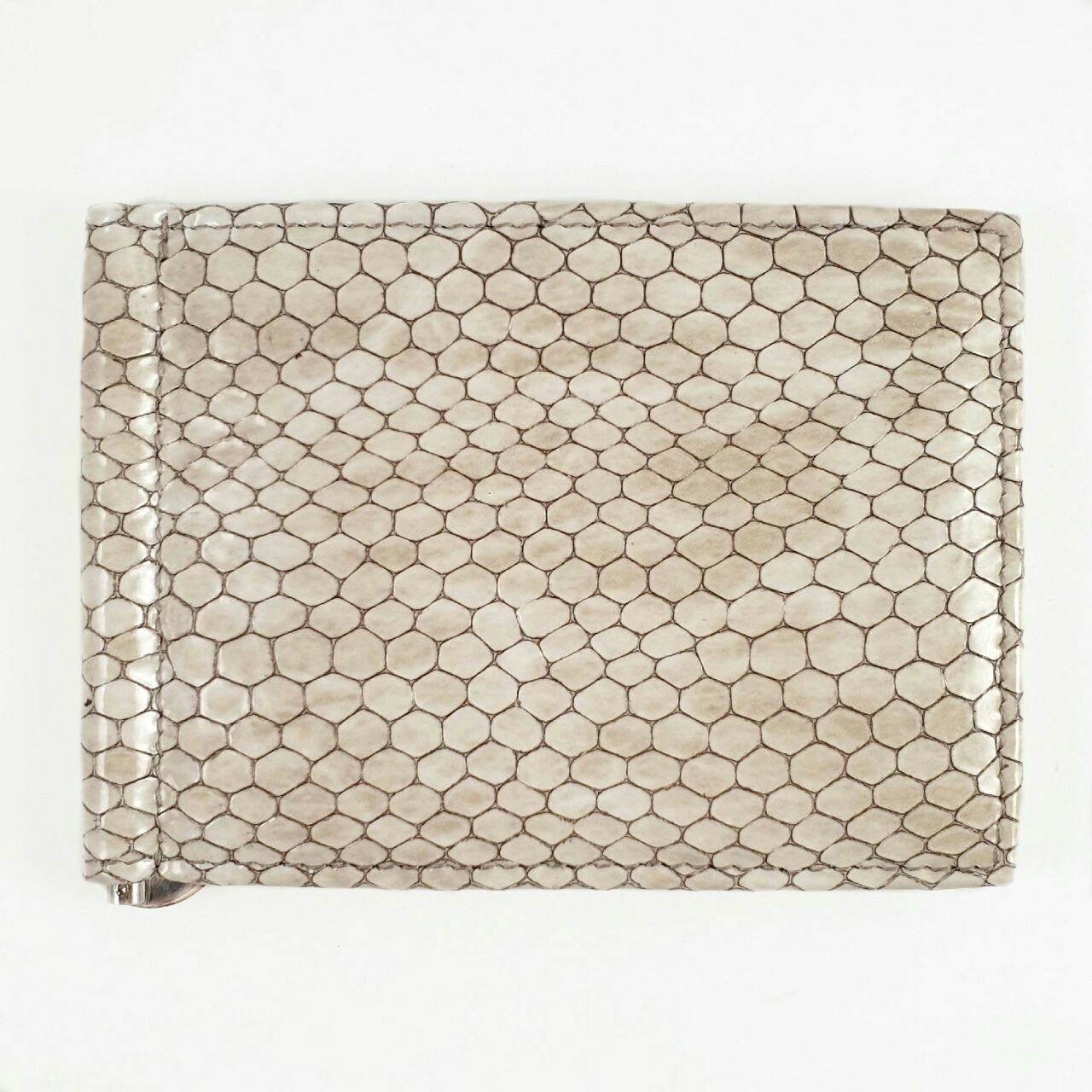 Затискач для купюр виконаний із натуральної шкіри бежевого кольору з тисненням під рептилію.