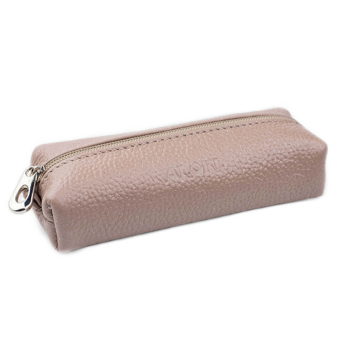 Компактна ключниця виконана з натуральної шкіри флотар із шиммером, кольору кави з молоком.