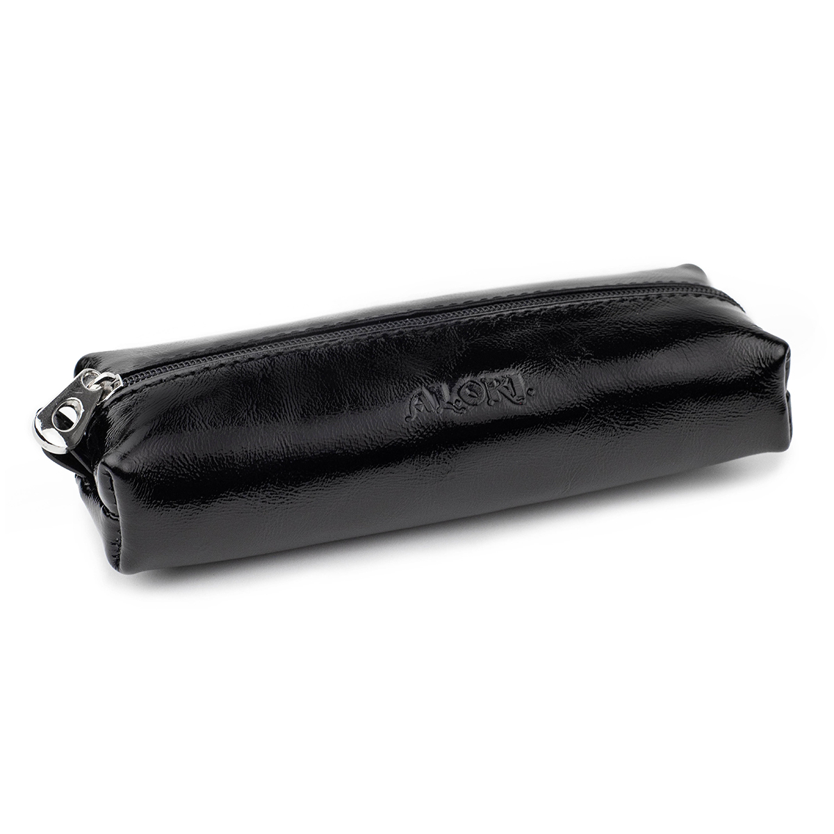 Компактна ключниця виконана з натуральної гладкої лакової шкіри, чорного кольору.