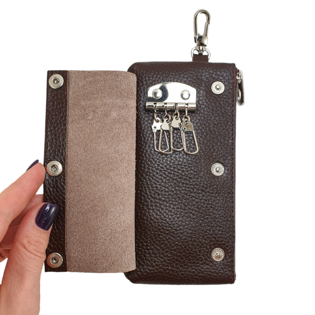 Ключниця виготовлена натуральної шкіри флотар, коричневого кольору.