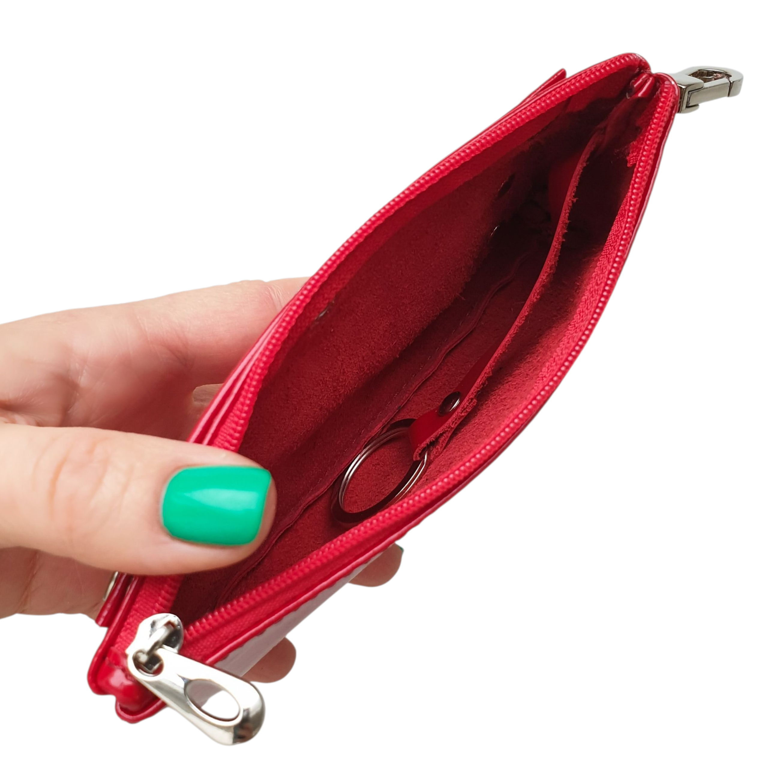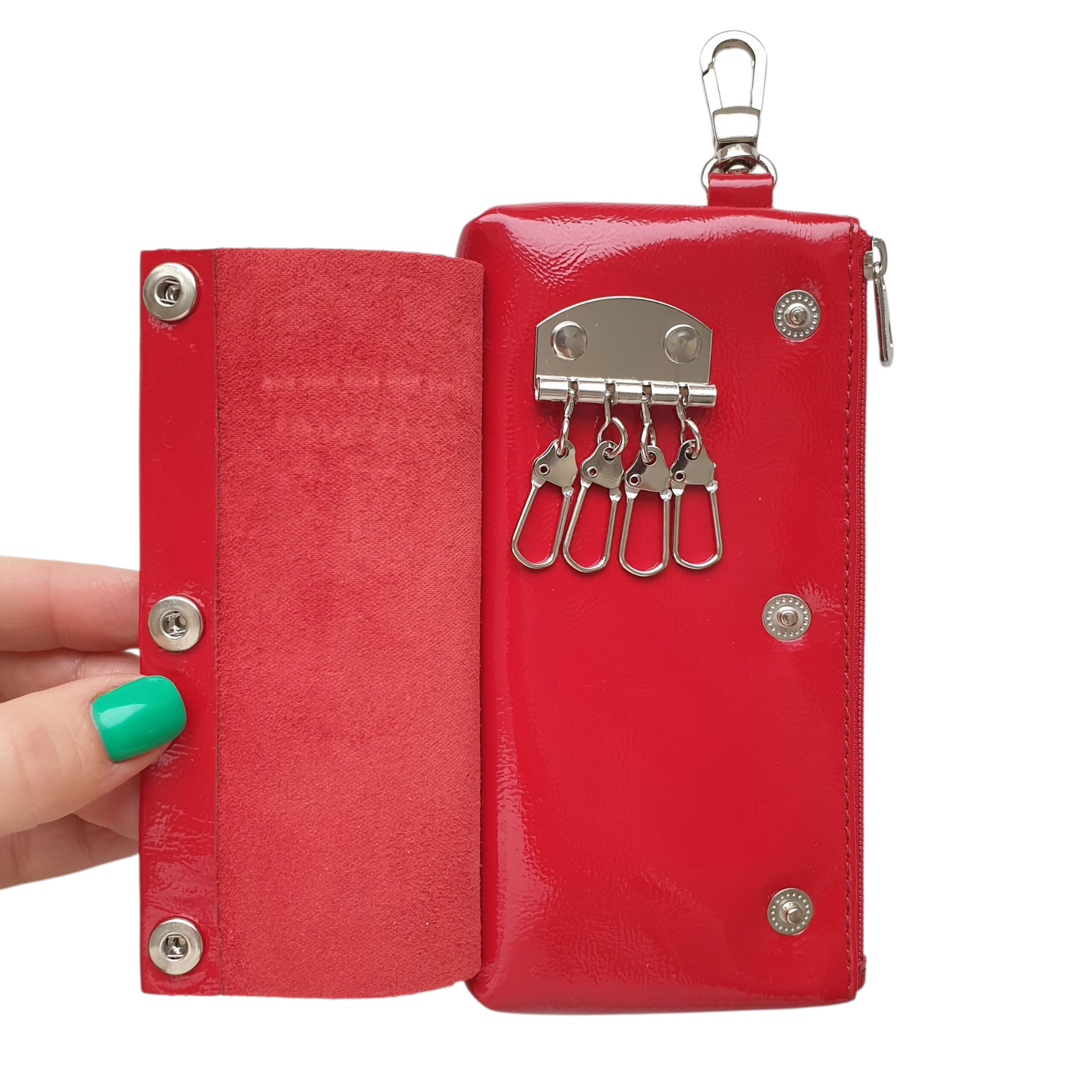 Ключниця виготовлена натуральної лакованої шкіри, червоного кольору.