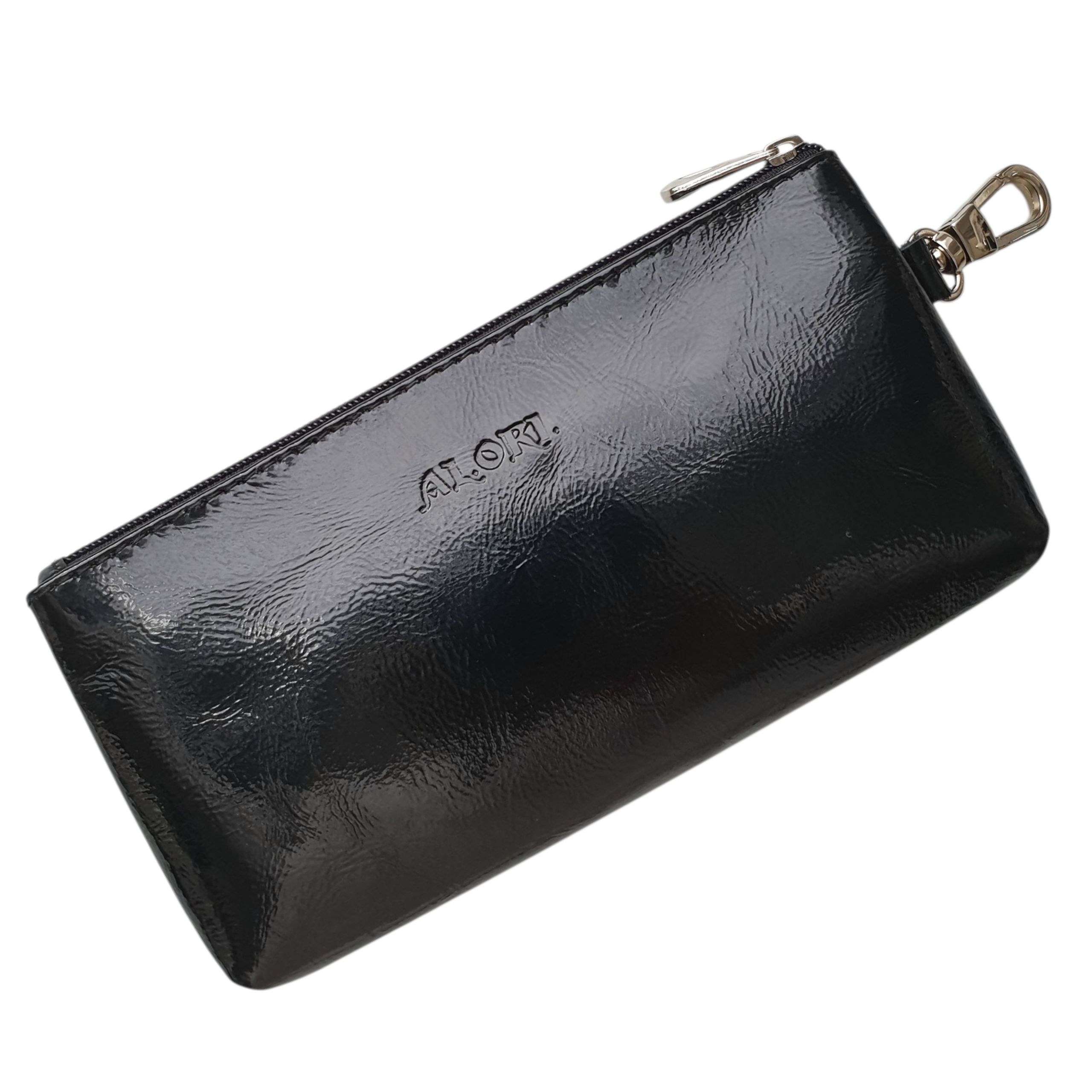 Ключниця виготовлена натуральної лакованої шкіри, чорного кольору.