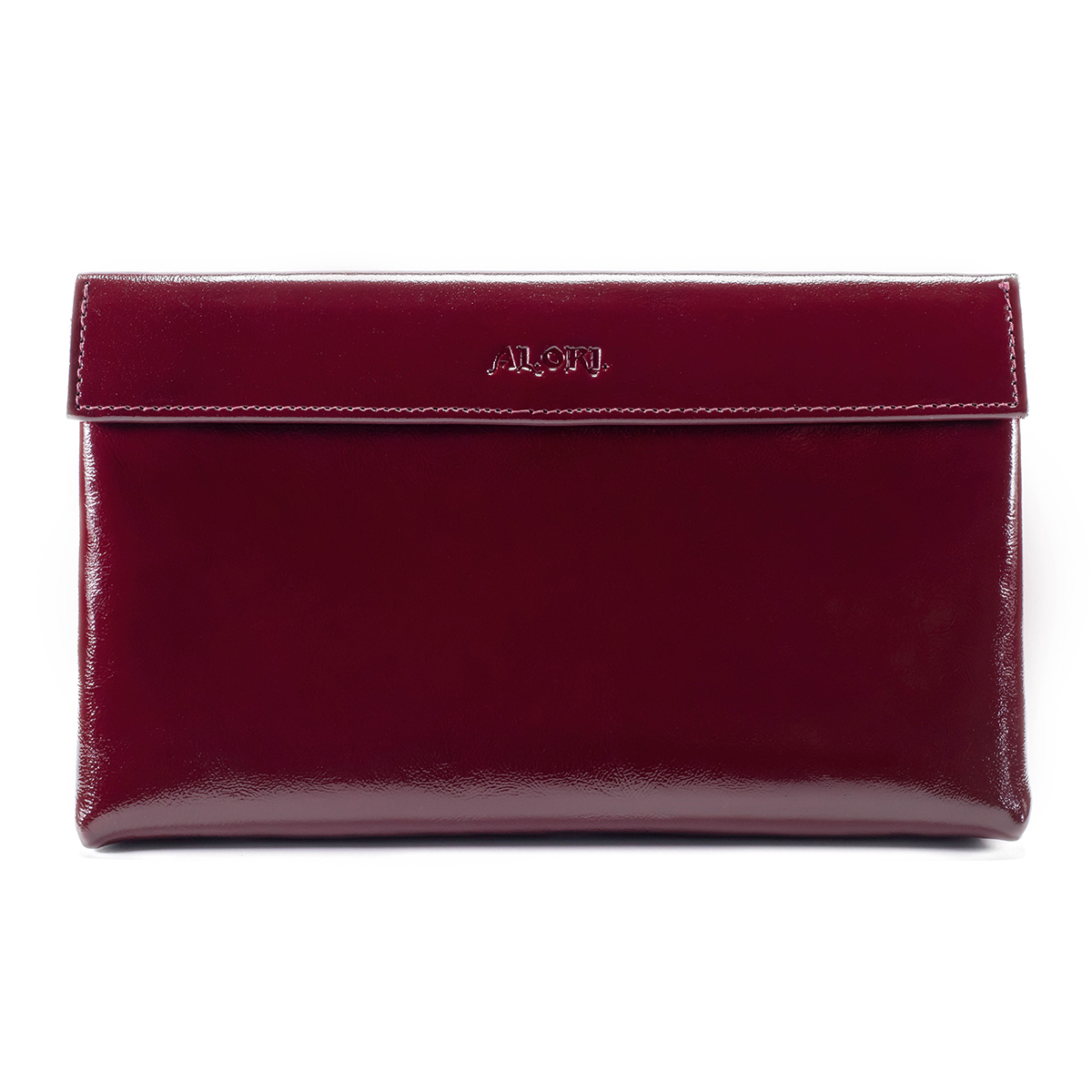 Косметичка-клатч виготовлена з натуральної гладкої лакової шкіри, бордового кольору.