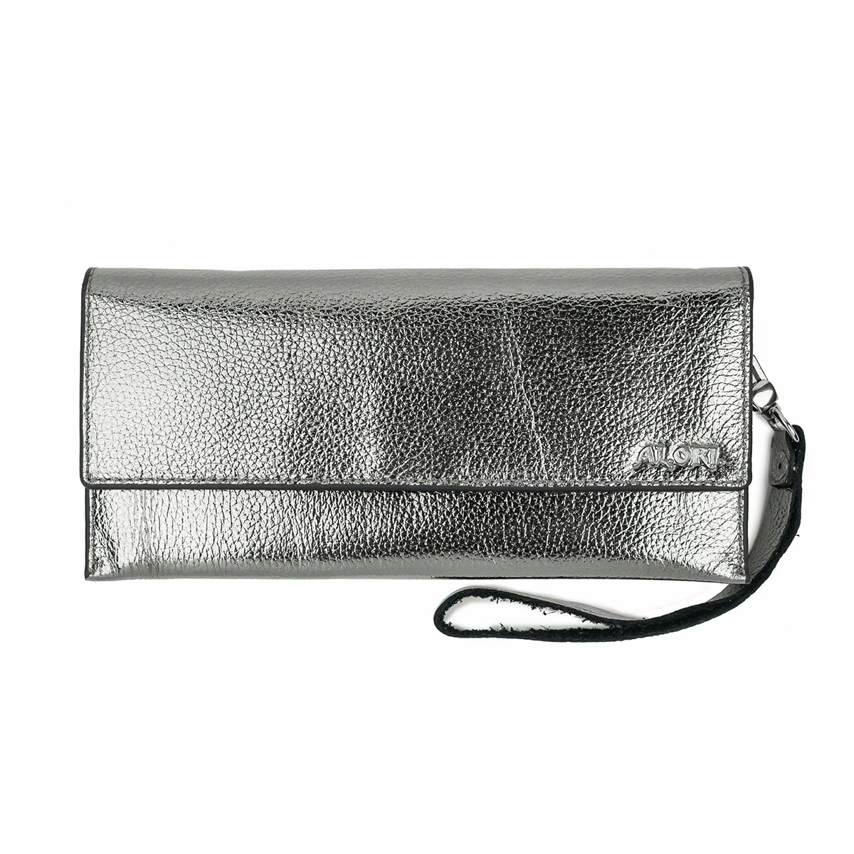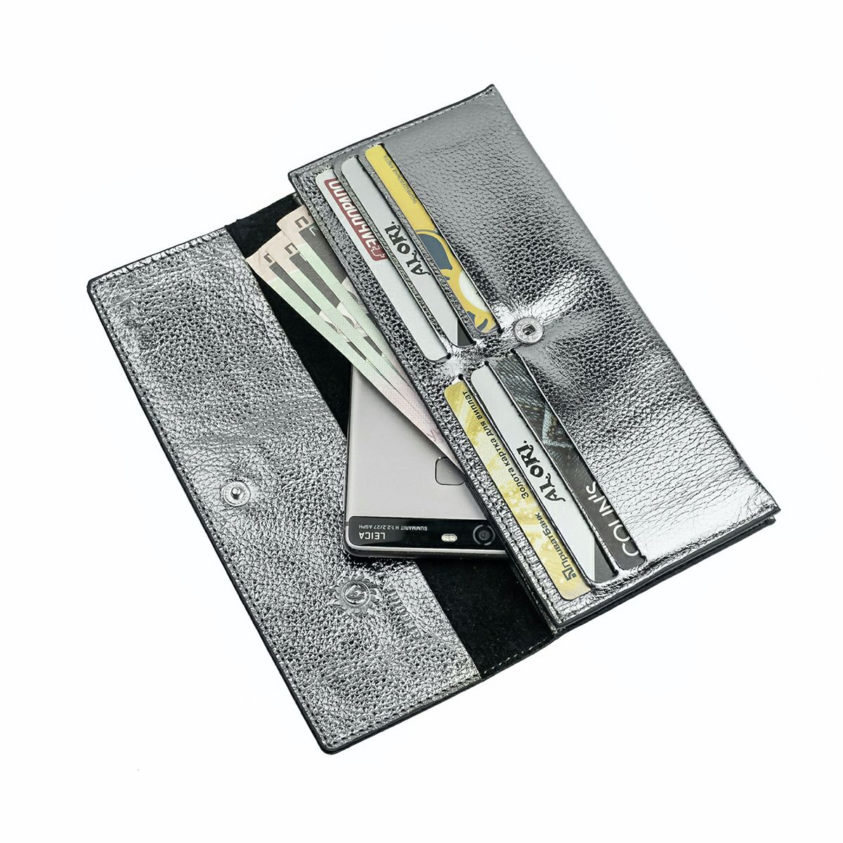 Гаманець жіночий сріблястий, з натуральної шкіри