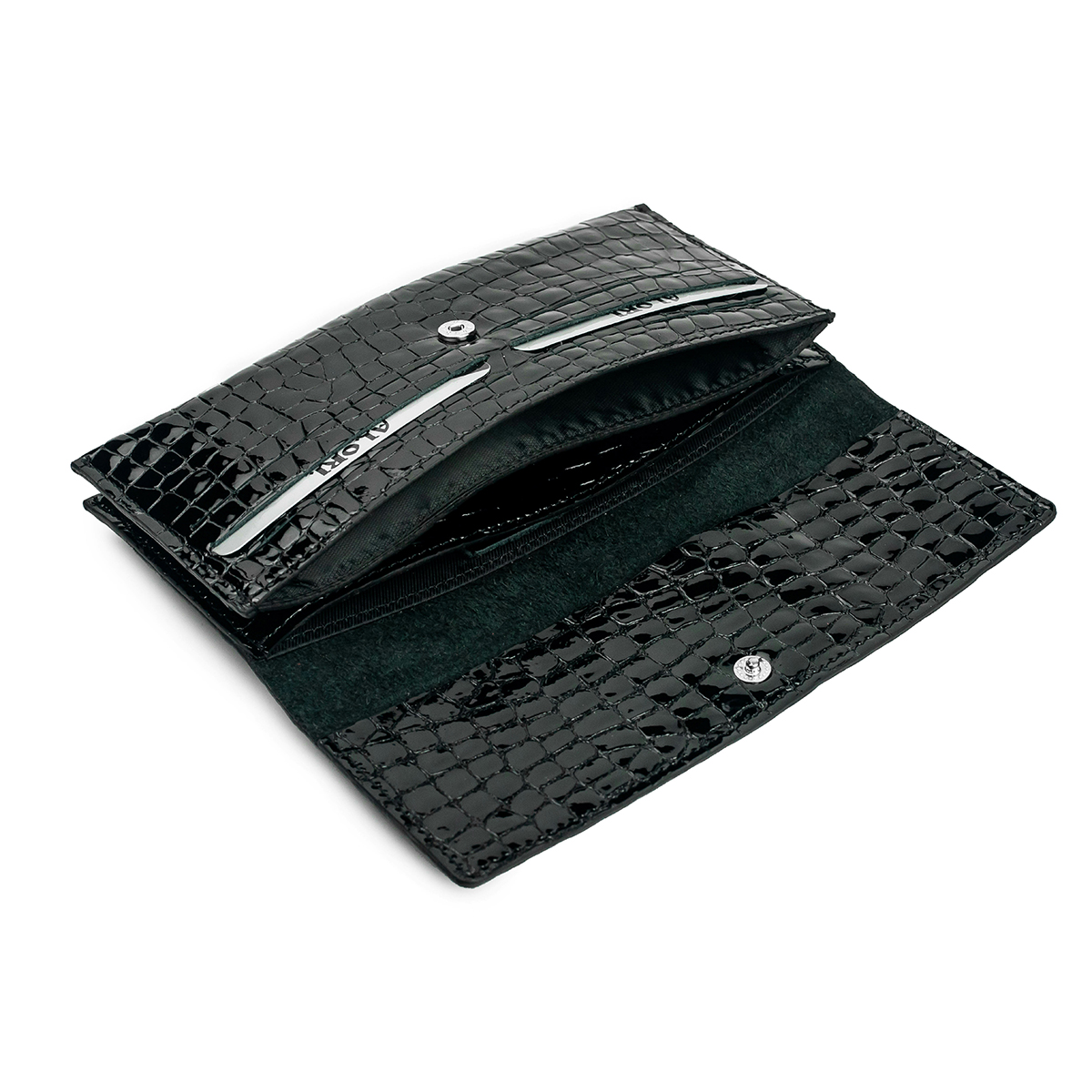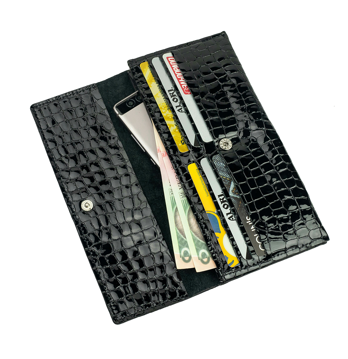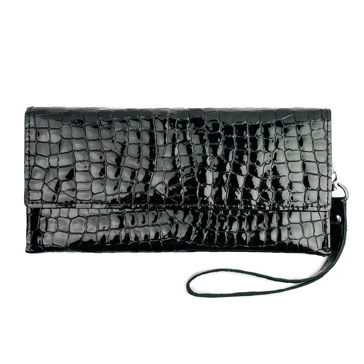 Гаманець жіночий чорного кольору, натуральна шкіра з тисненням під рептилію
