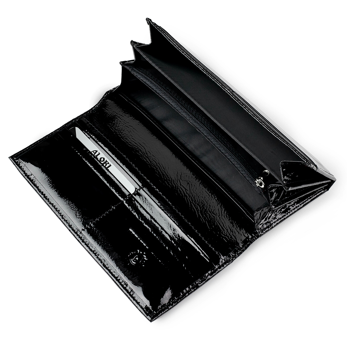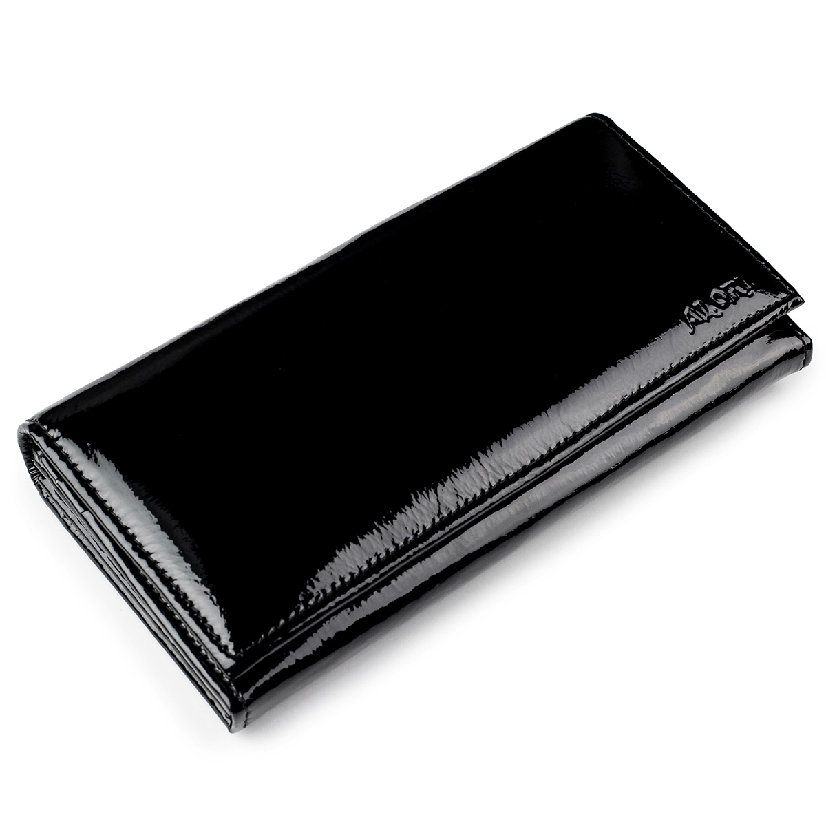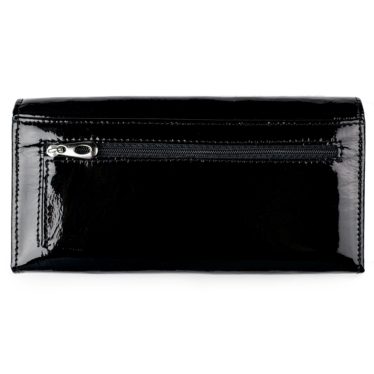 Гаманець жіночий чорний, натуральна гладка лакова шкіра