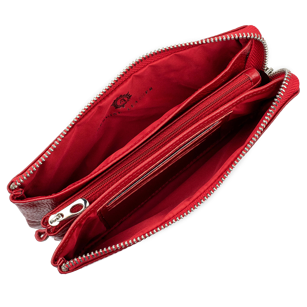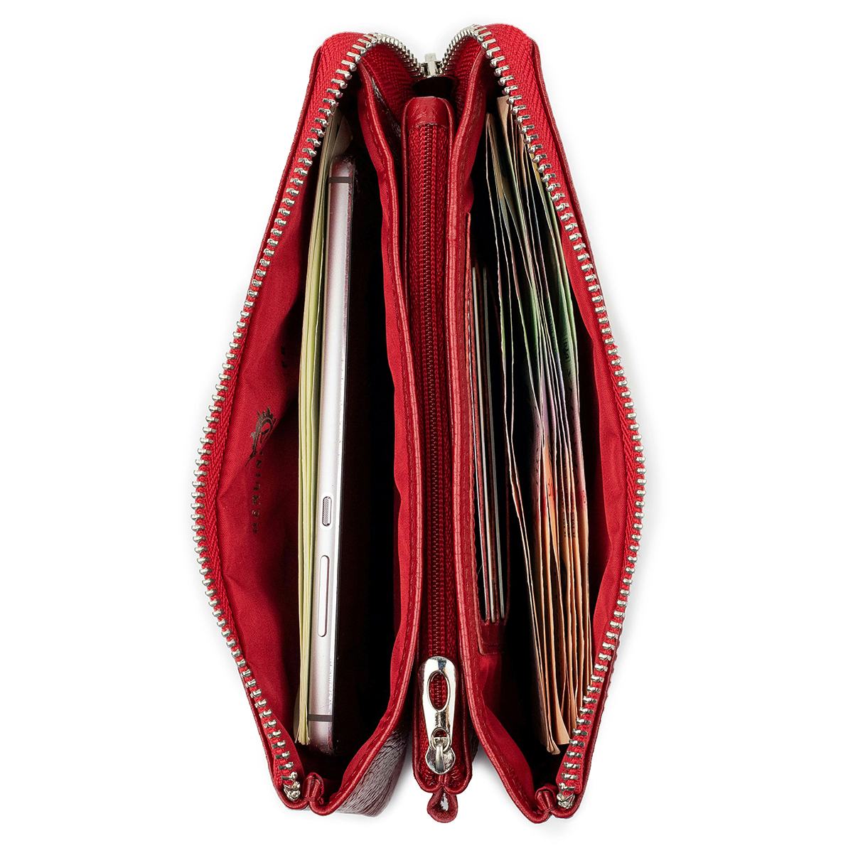 Гаманець-клатч виконаний із натуральної шкіри флотар червоного кольору.