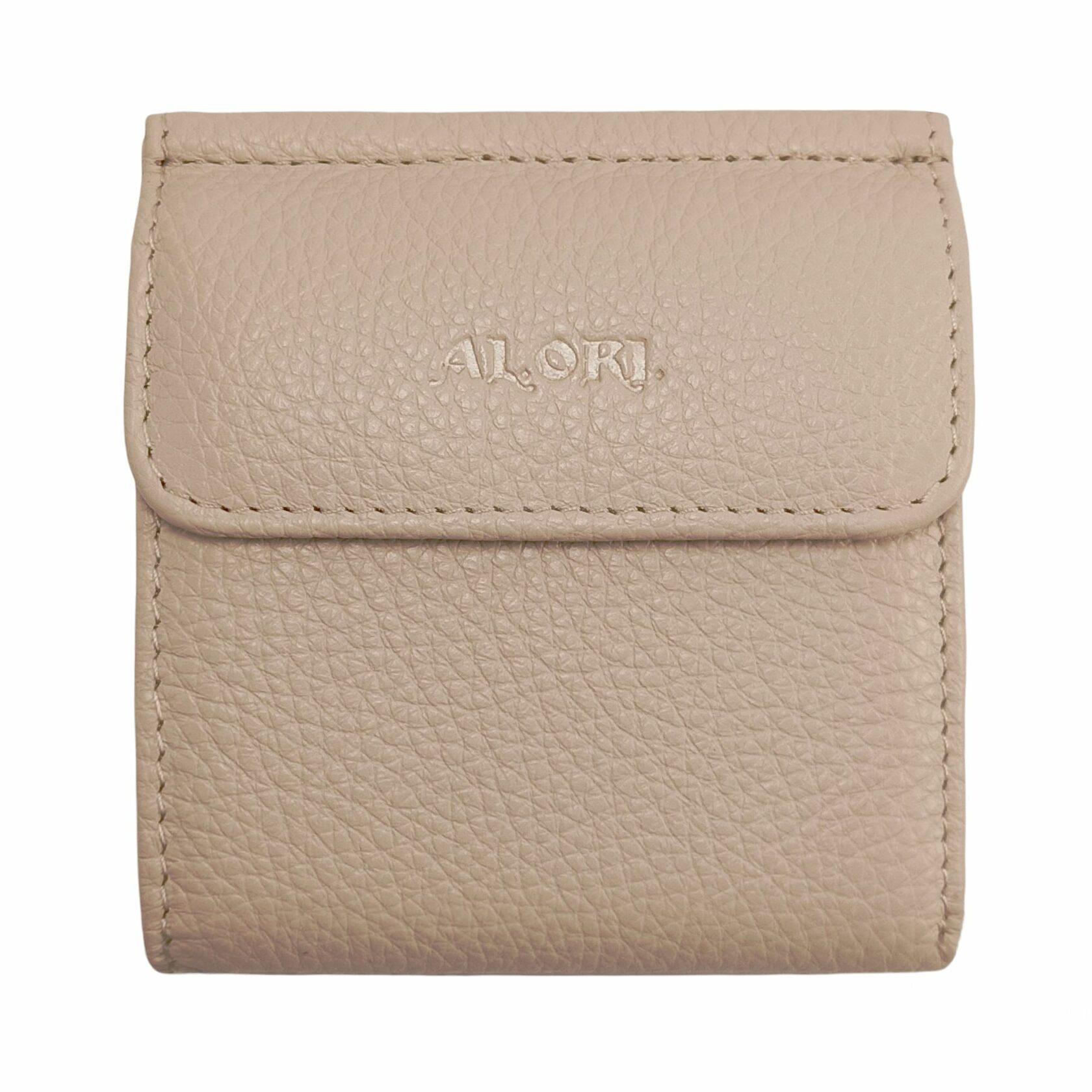 Гаманець-міні виконаний із натуральної шкіри флотар, бежевого кольору.