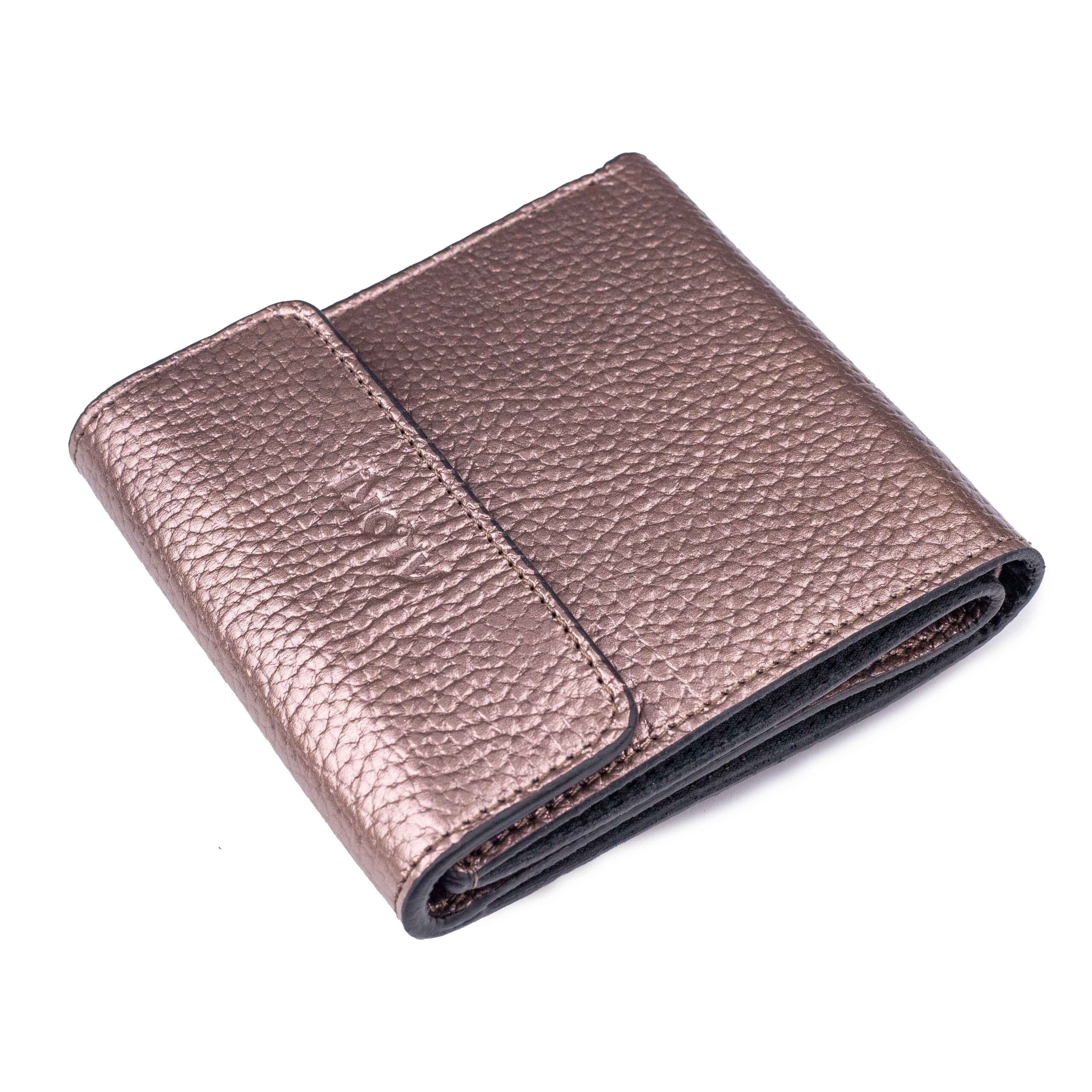 Гаманець-міні виготовлений з натуральної шкіри флотар, рожевого кольору з перламутровим напиленням.