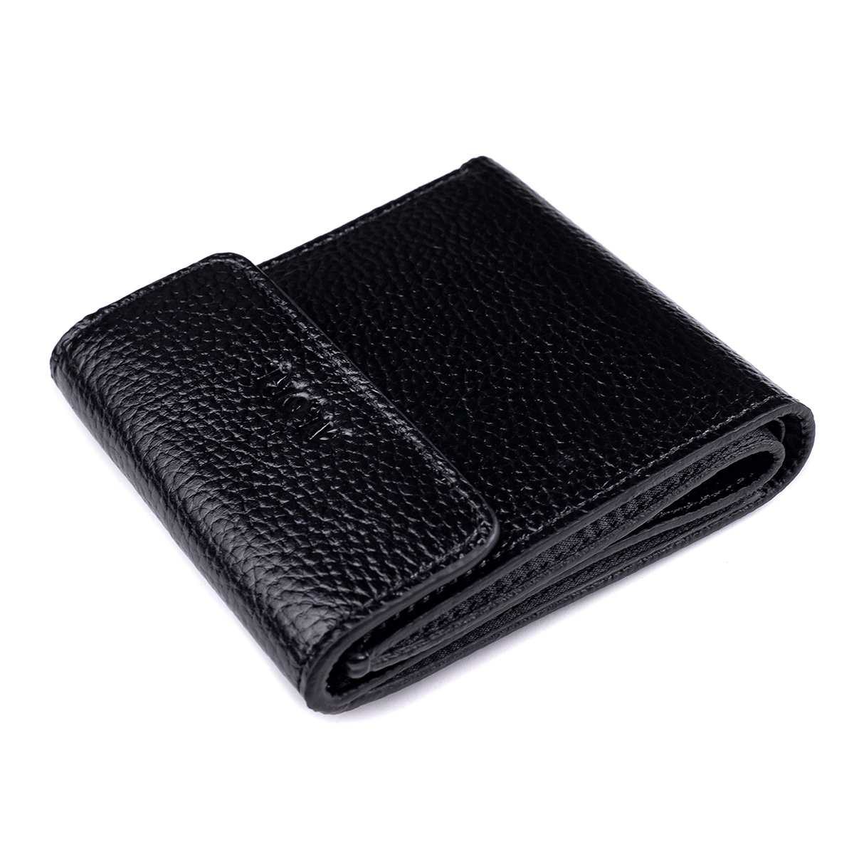 Гаманець-міні виконаний із натуральної шкіри флотар, чорного кольору.