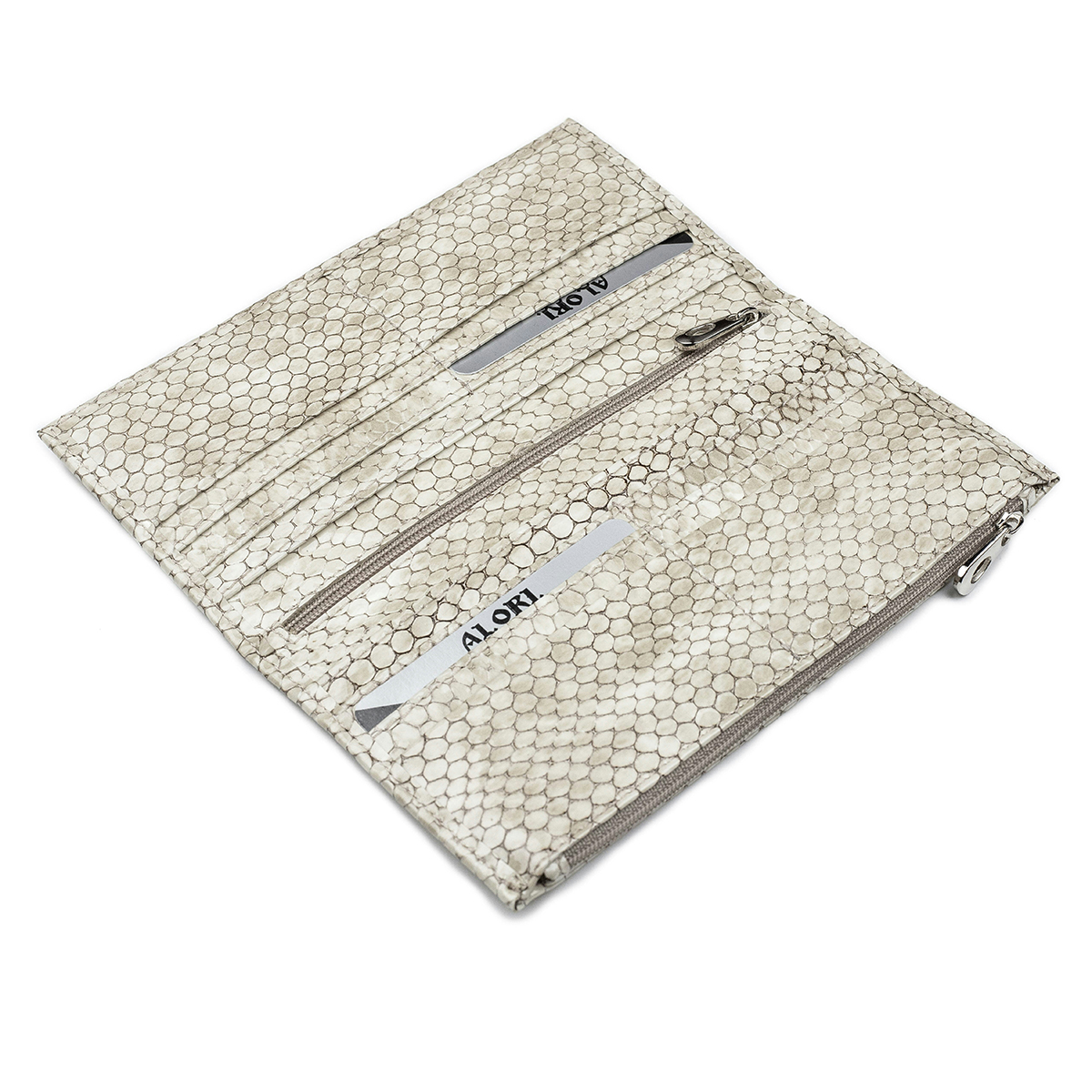 Купюрниця жіноча бежева, натуральна лакова шкіра з тисненням під рептилію